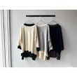 NARU ライスニット 綿コーマ裾配色 7分袖ニット [648715]