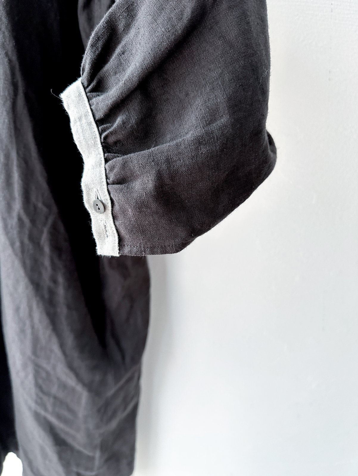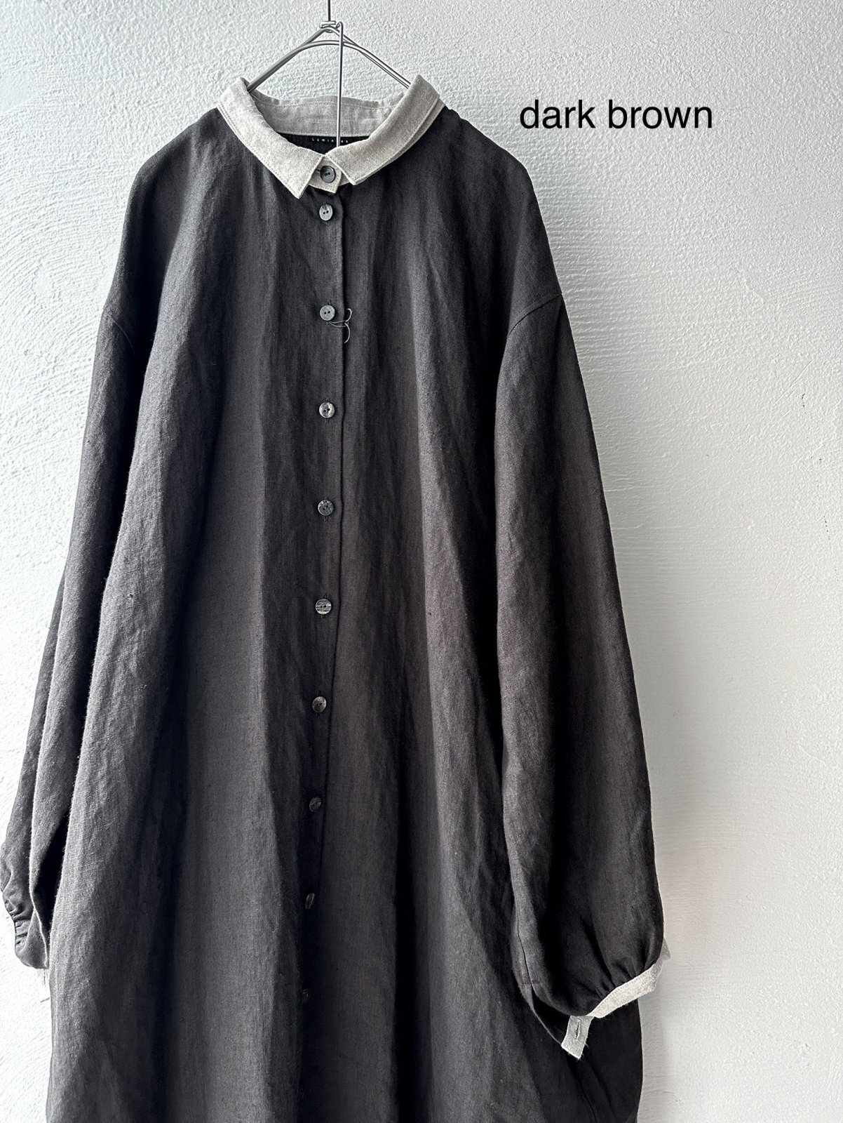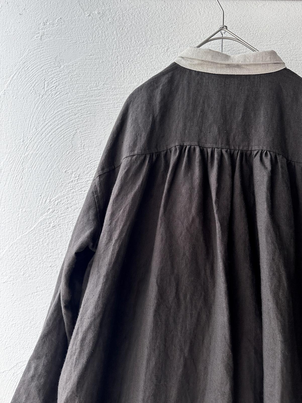 Luminaes ベルギーリネンキャンバス チビ襟バイカラーギャザーOP / kinari