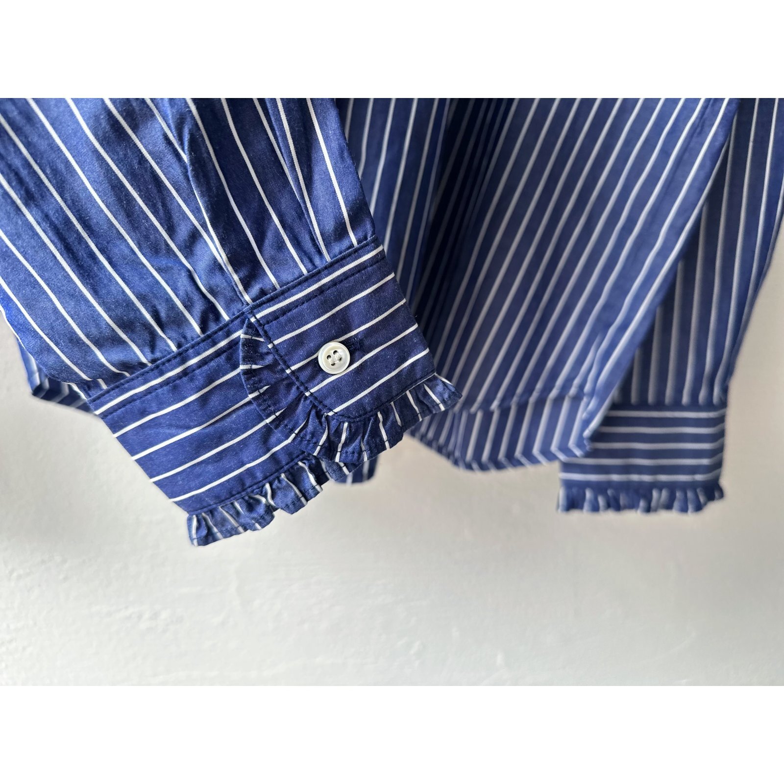 nouvelles du paradis ストライプクロス&アメリカンブロードクロス フリルブラウス【クリックポスト(185円)発送可能】