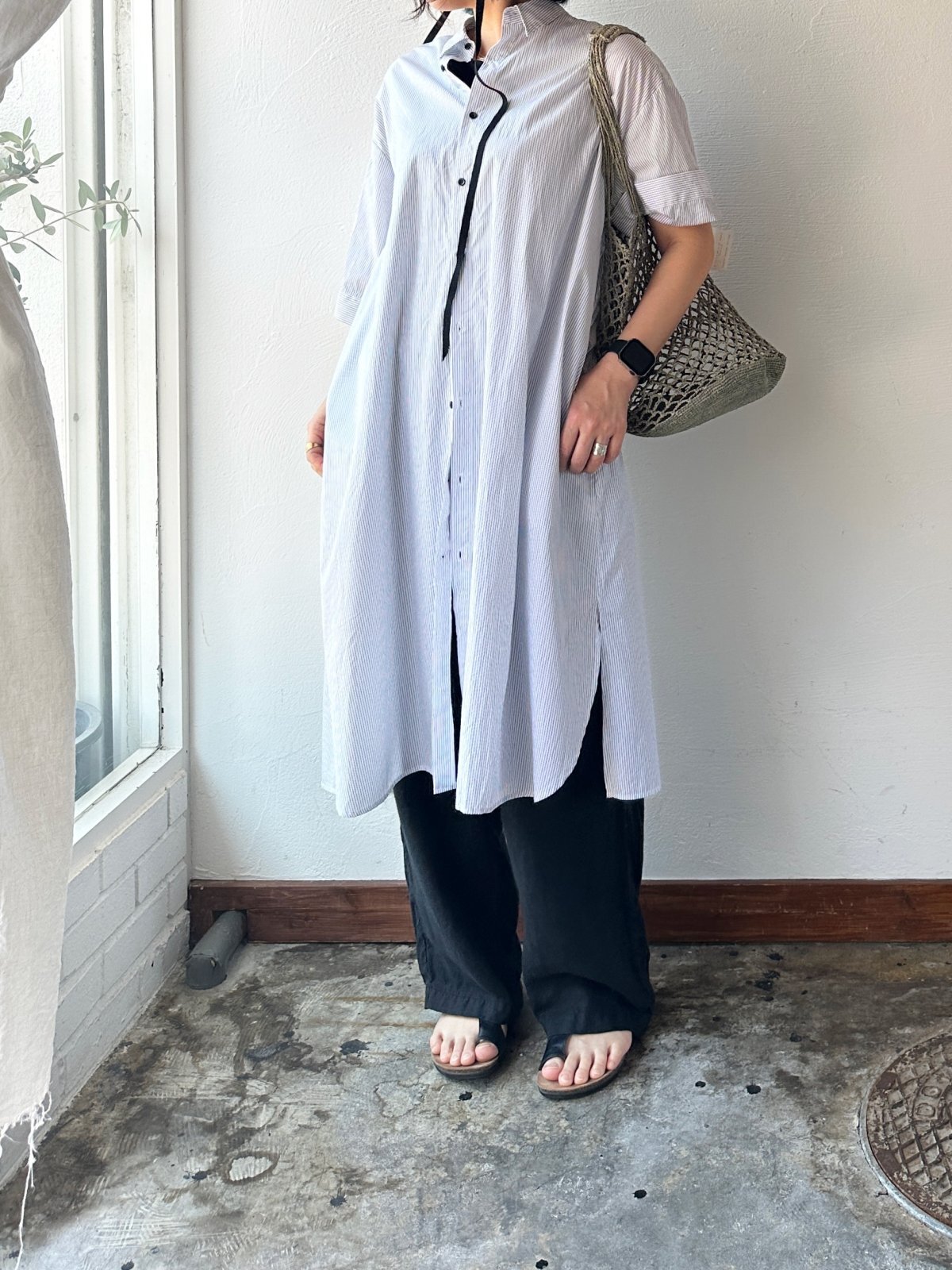 1920年代のアメリカのブロードクロスをモチーフにした糸を使用した素材のシャツワンピース。