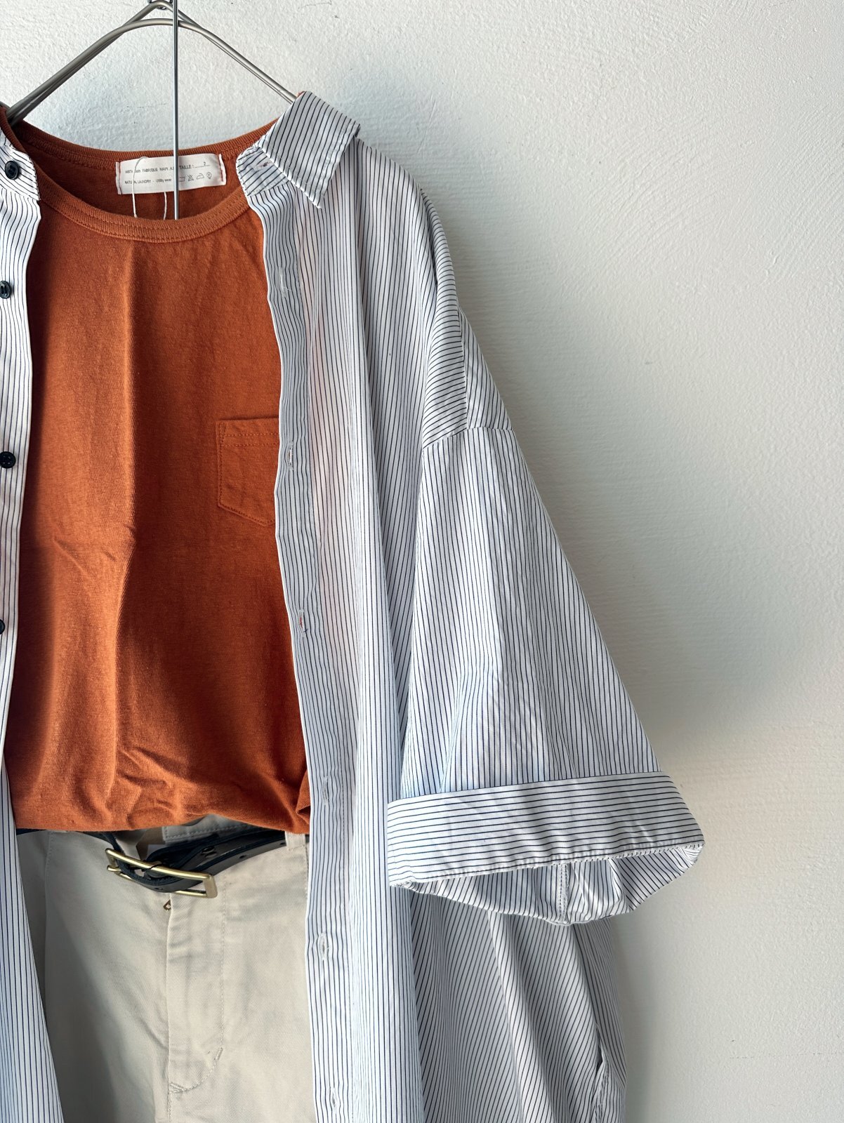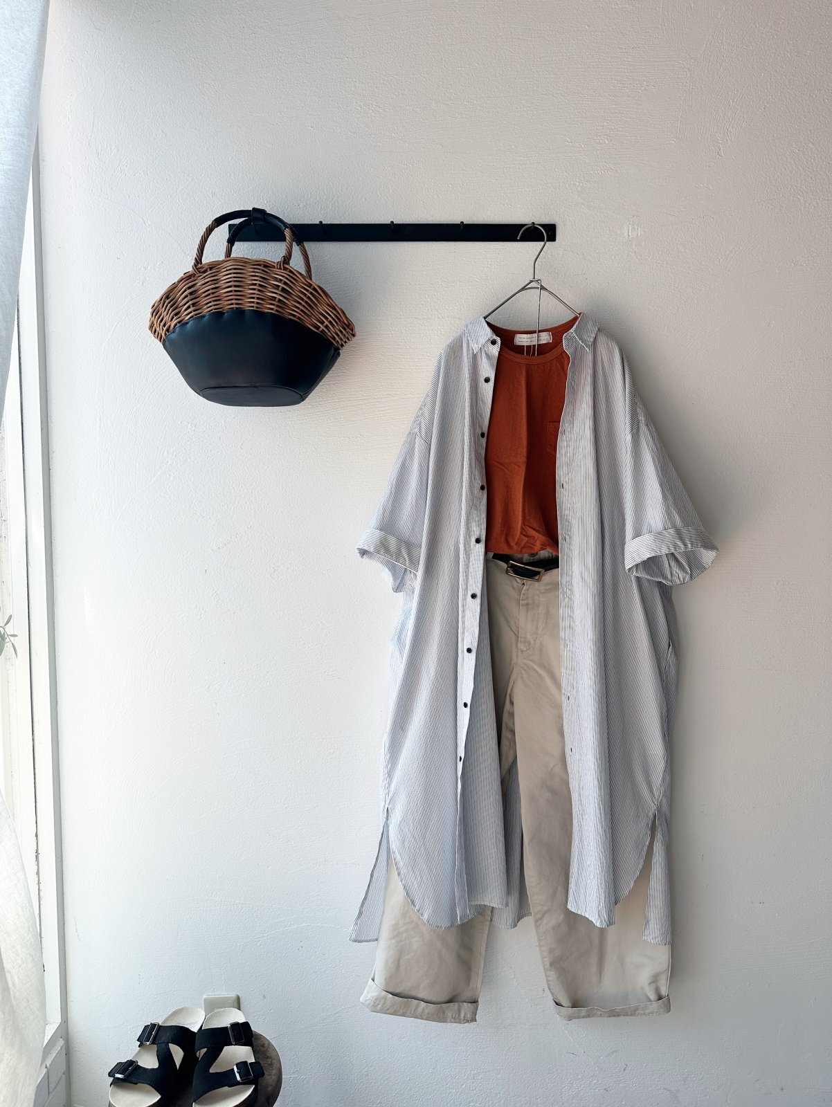 ドロップショルダーと太めの袖で夏でも涼しくお過ごしいただけます。