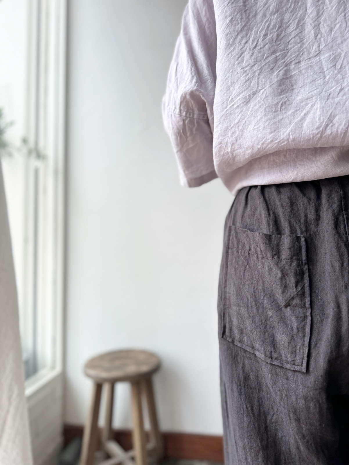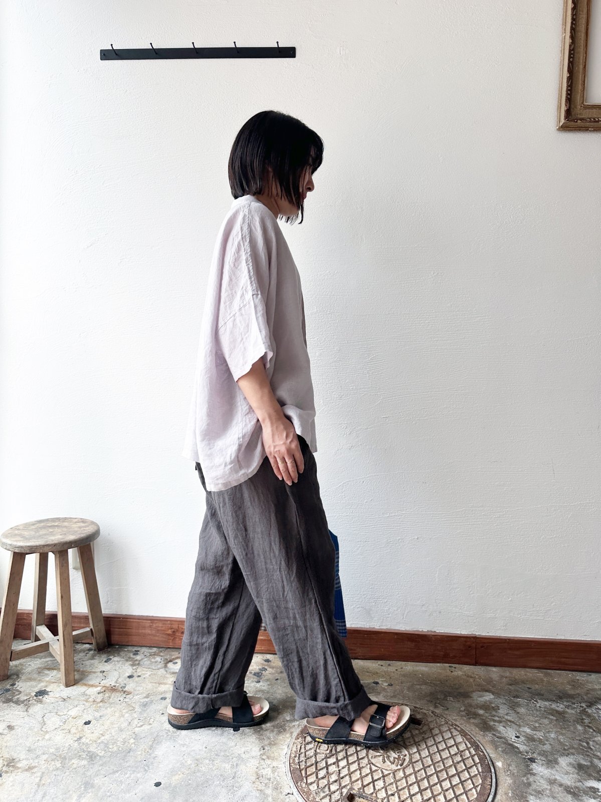 prit 80/1ローン 5分袖バンドカラーラウンドヘムワイドシャツ / opal gray