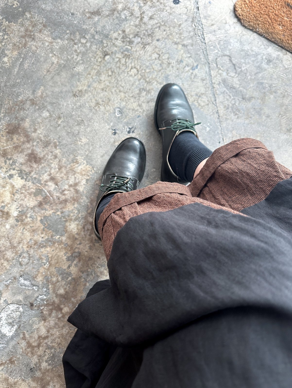 Luminaes 手染めリネン 7分袖ワイドシャツワンピース / black