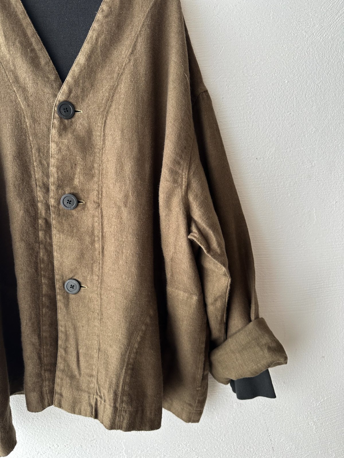 prit 25/1フレンチリネンツイル起毛 ノーカラージャケット
