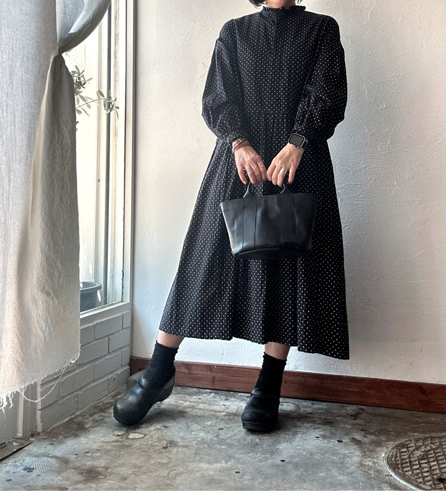 コーディネートに遊び心をプラスする細かなドット柄生地。