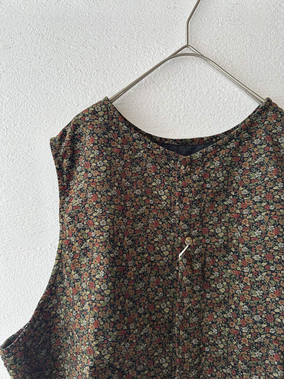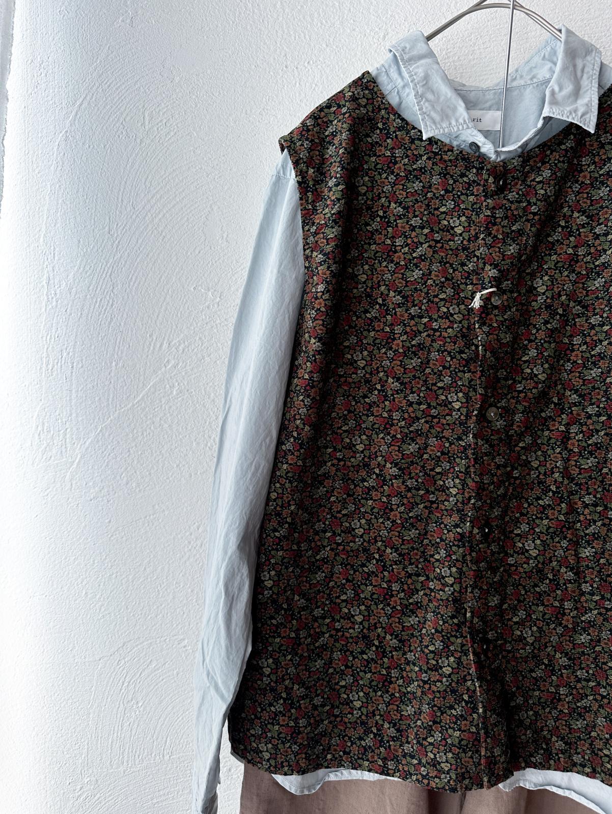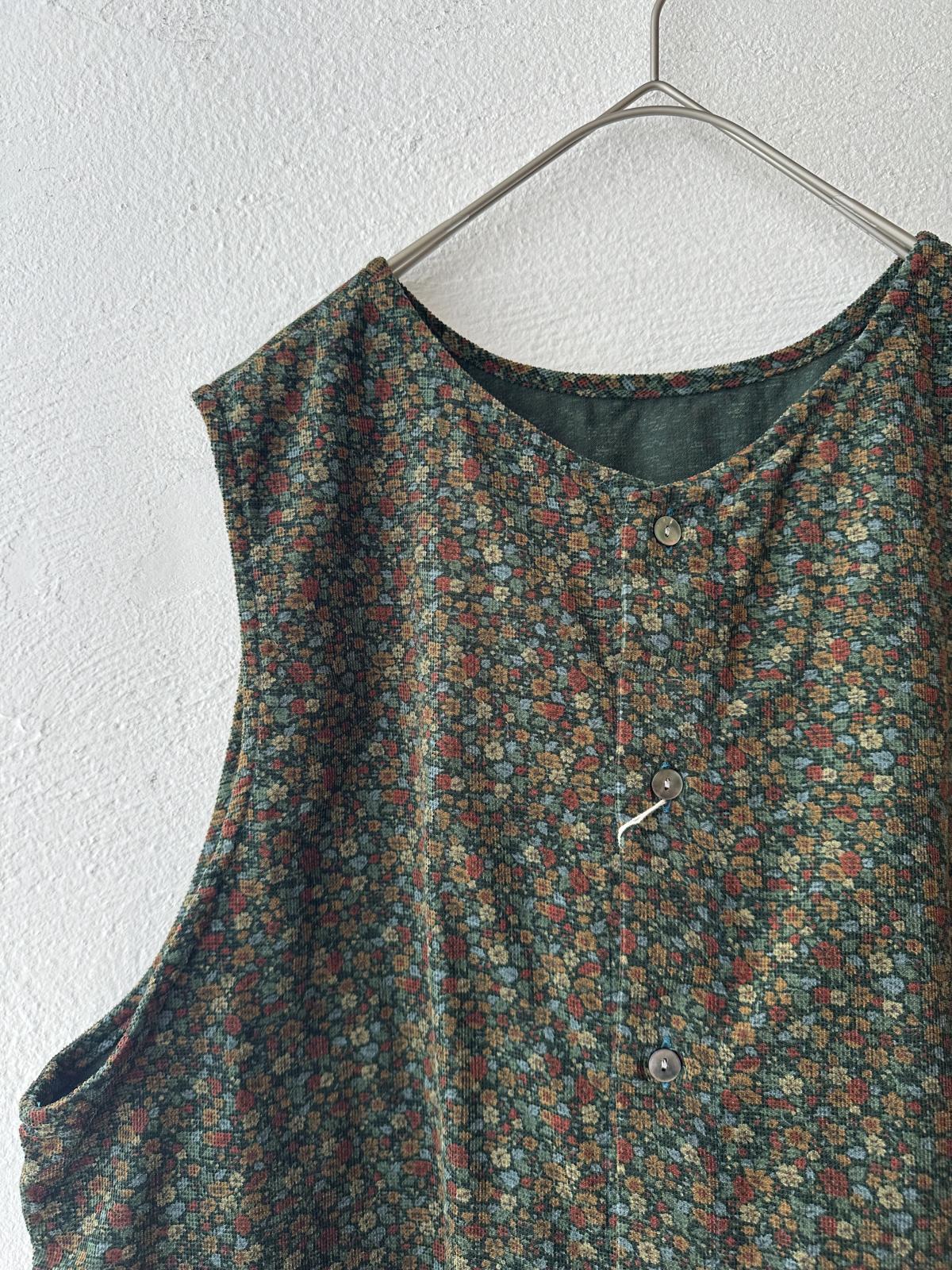 prit 40/1キャラメルコール小花プリント 2wayベスト / green bace