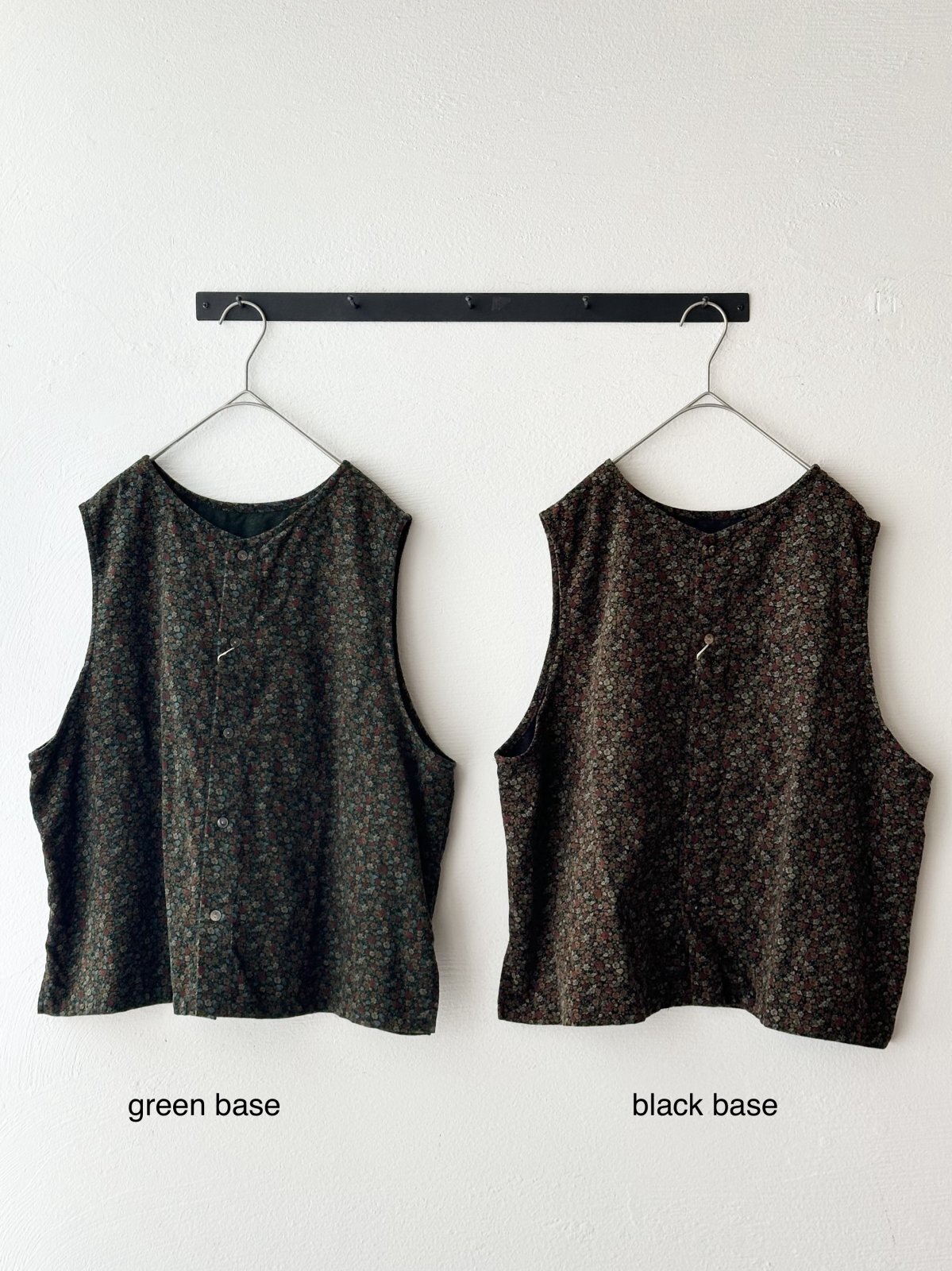 prit 40/1キャラメルコール小花プリント 2wayベスト / black bace