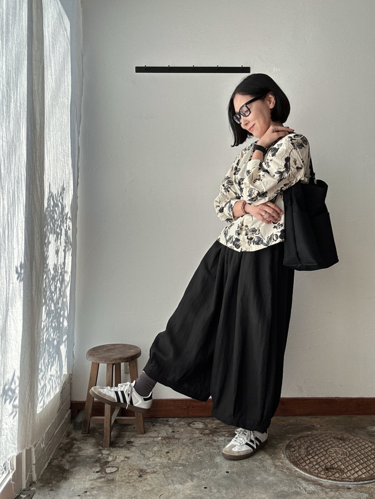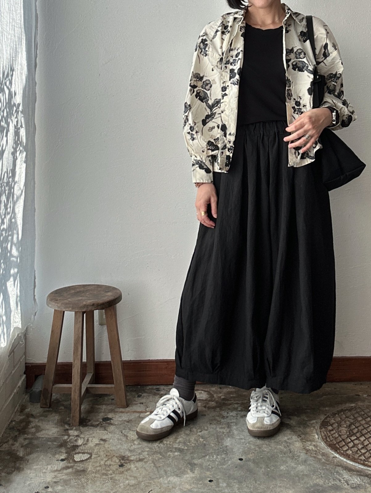 着丈が短めでボリュームのあるボトムやスカートと相性がいいです。