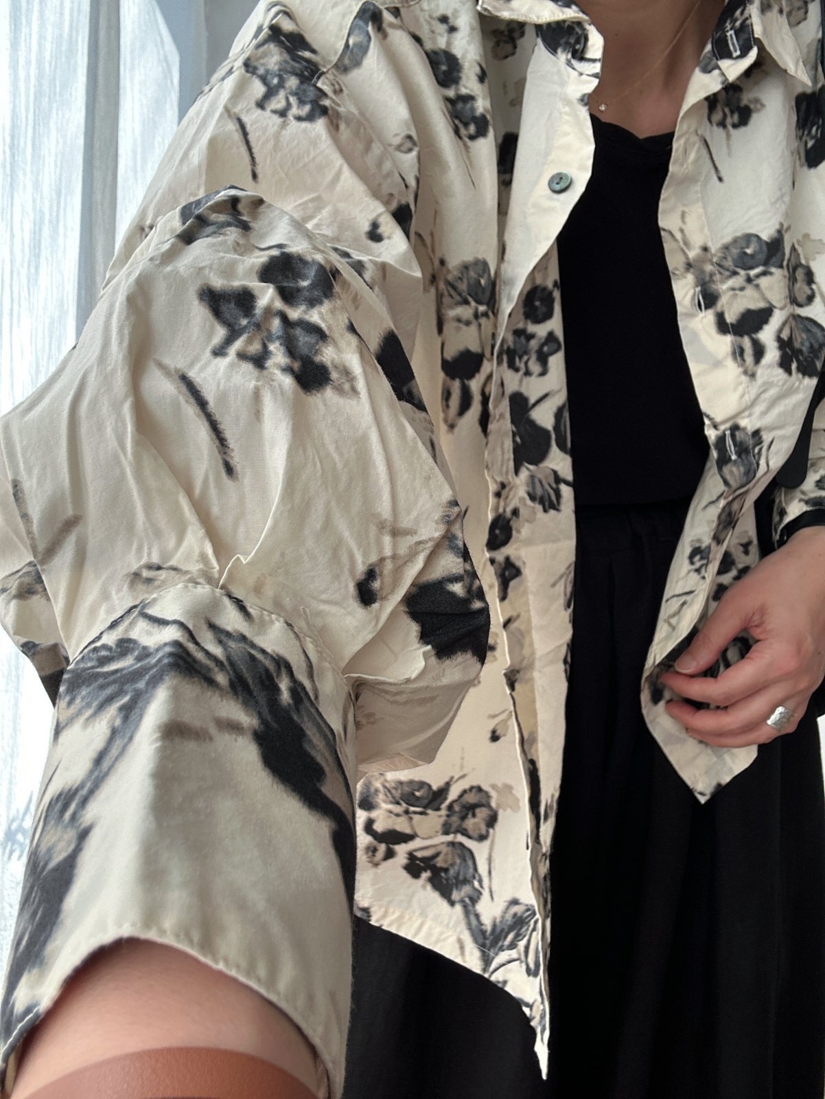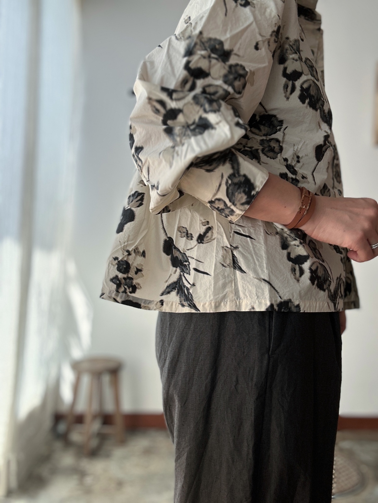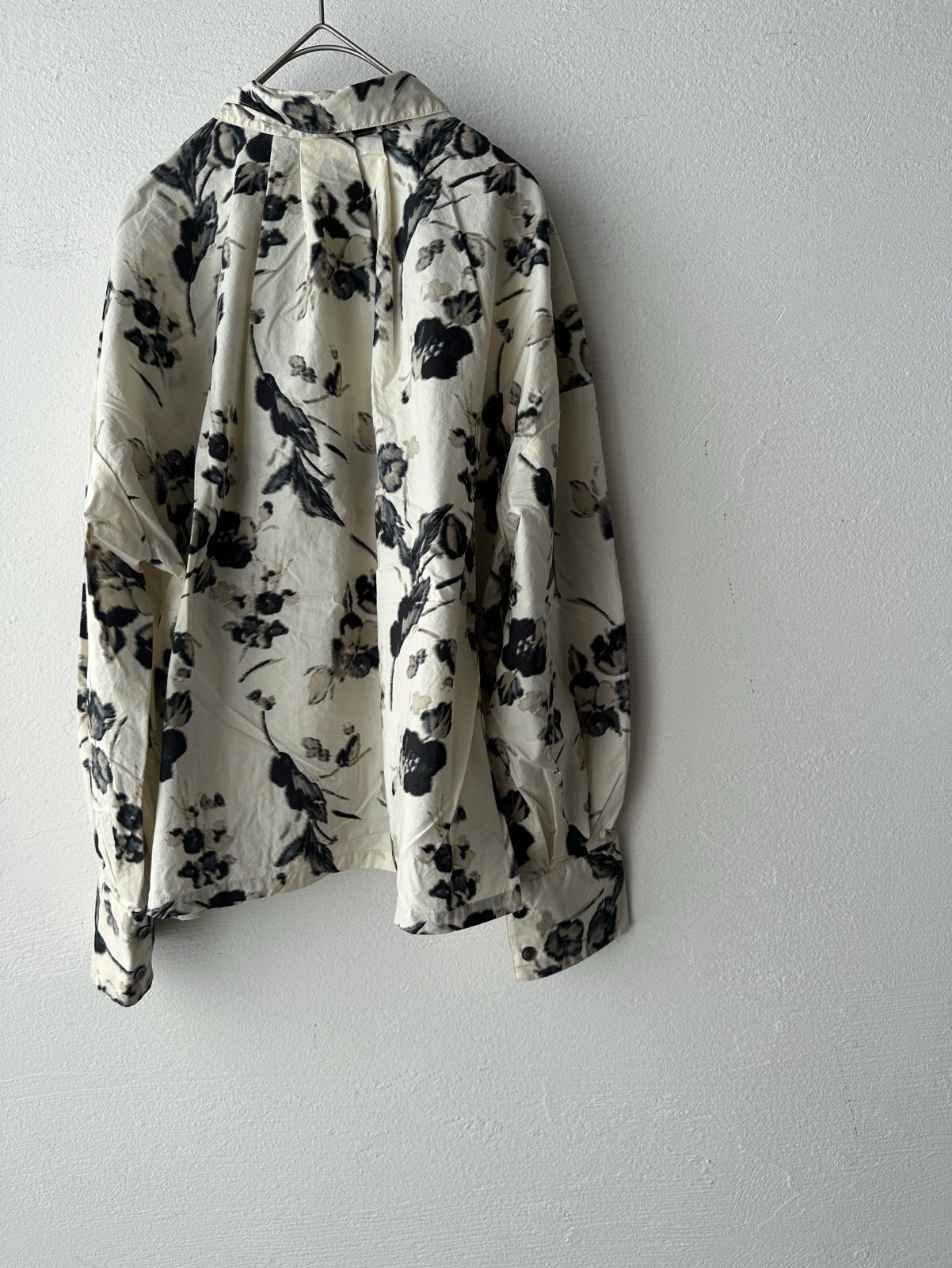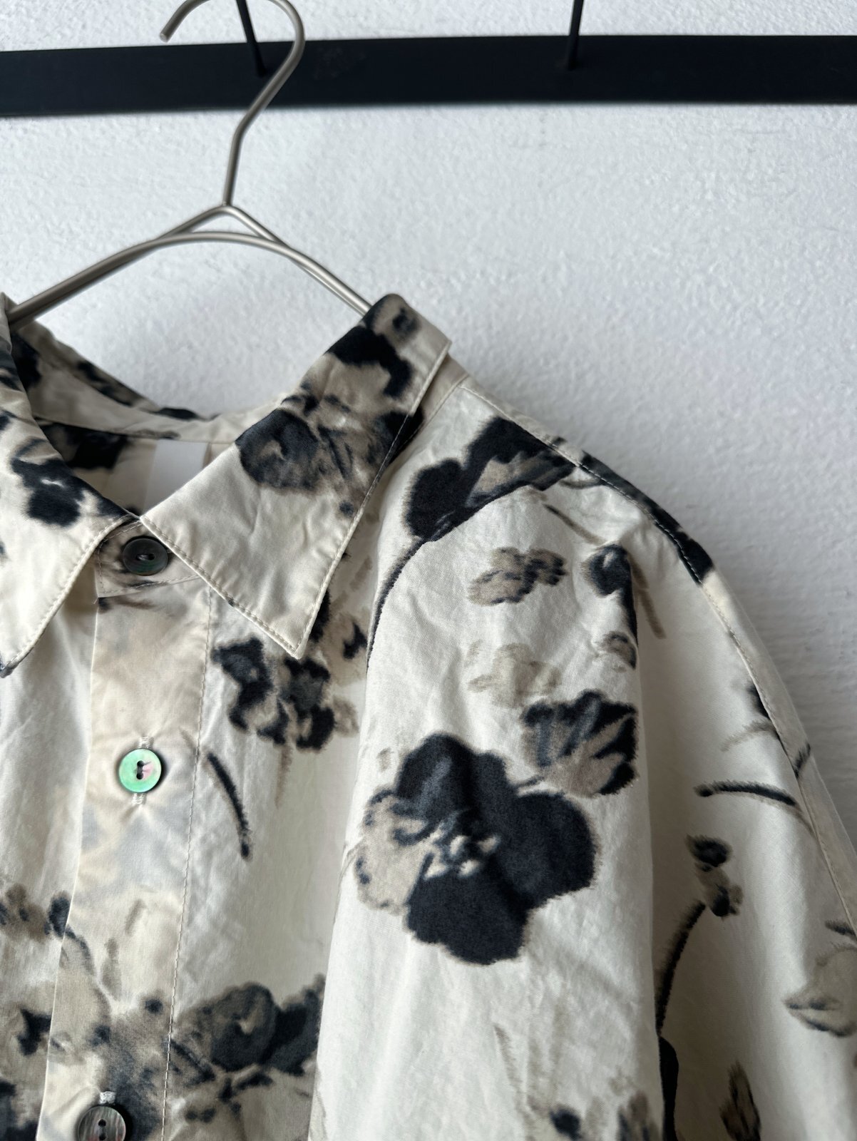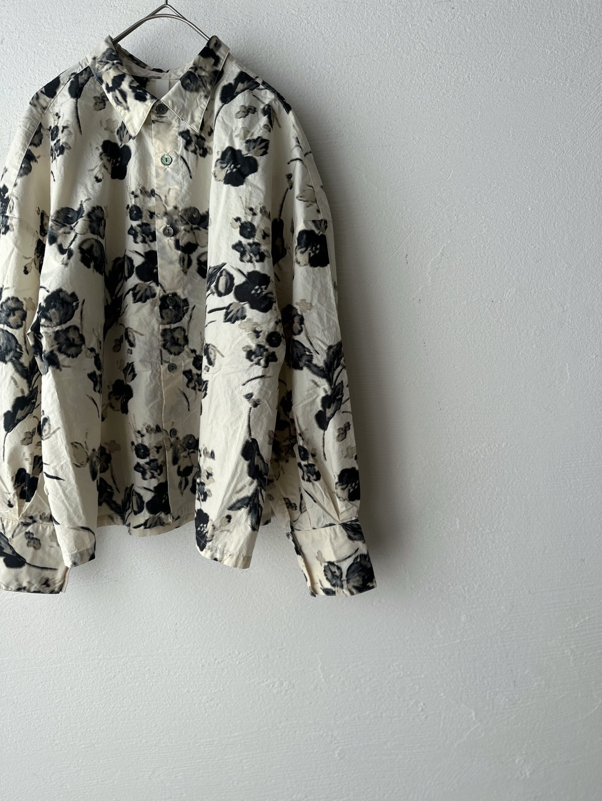 ぼかしたようなフラワープリントが素敵なオーバーサイズシャツ。