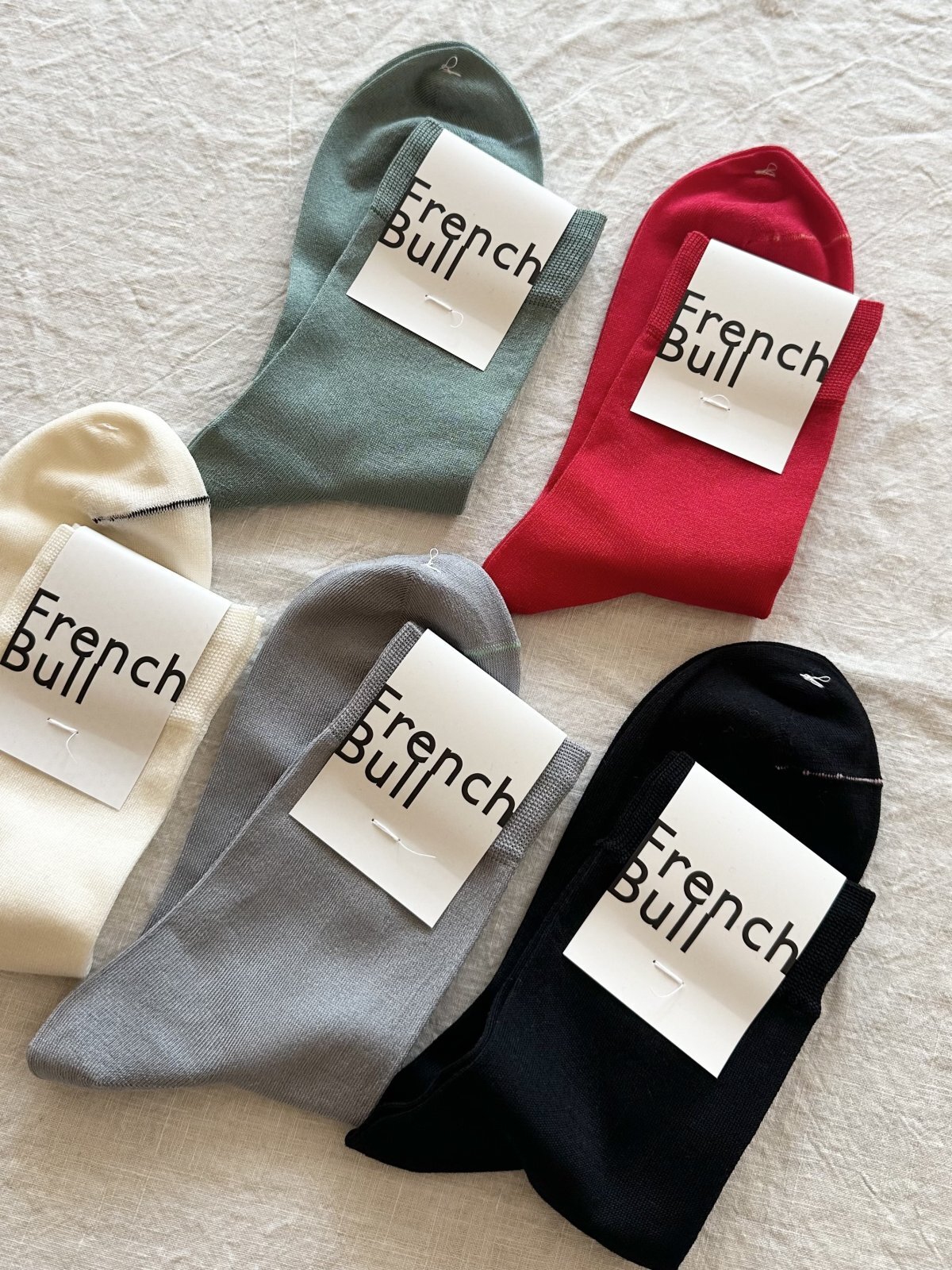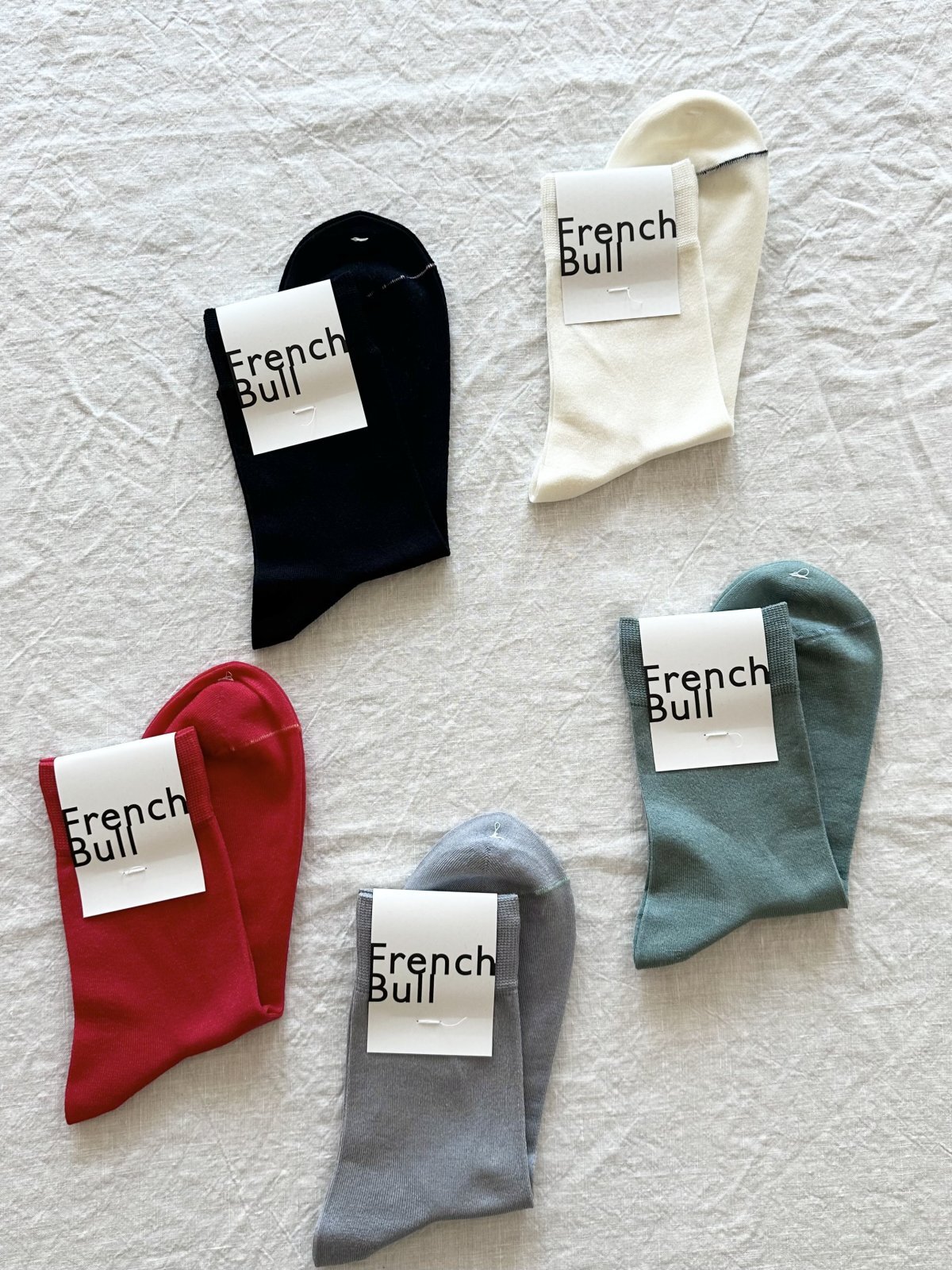ベーシックカラーと差し色カラーの5色展開のシンプルなソックス