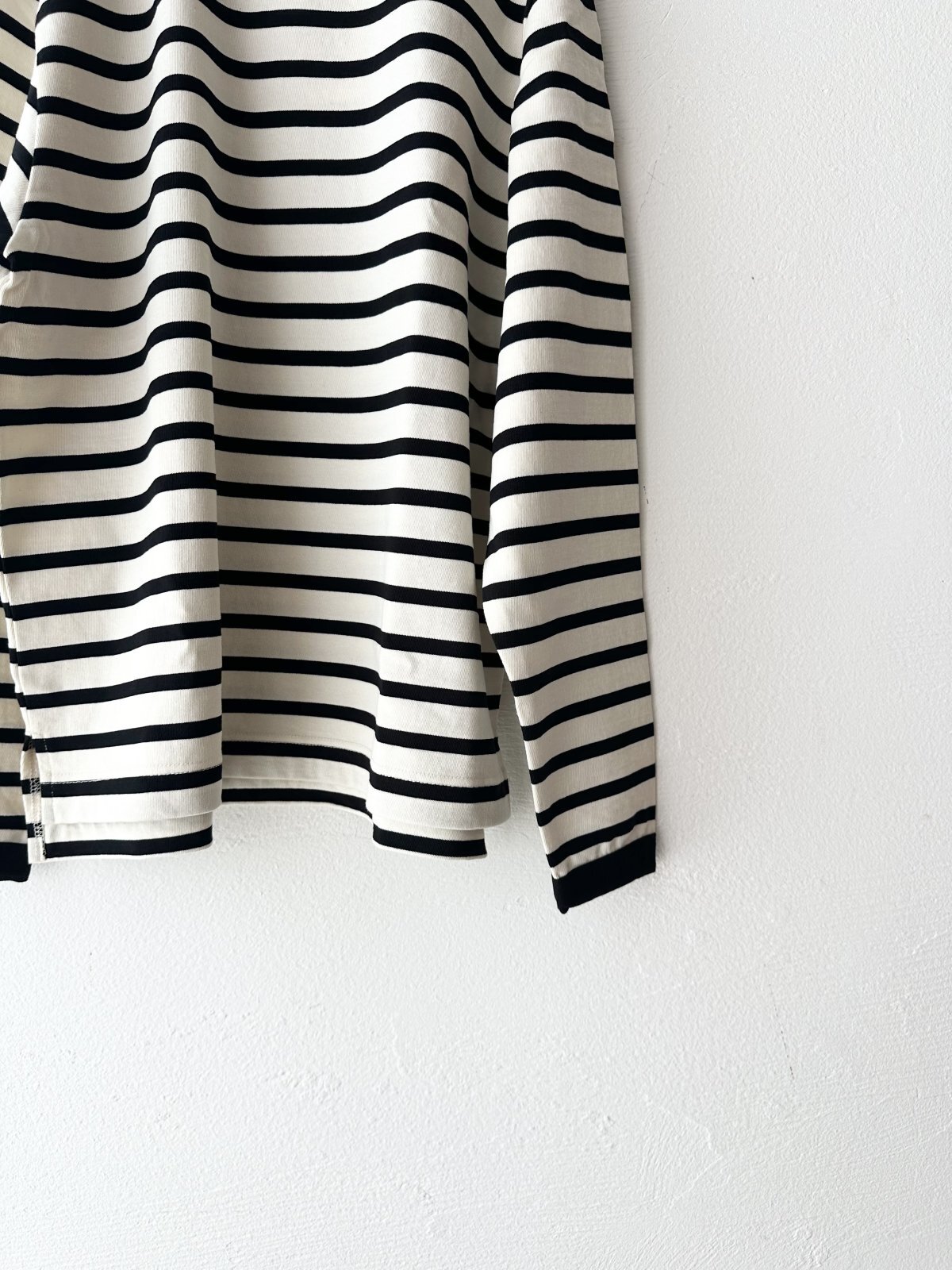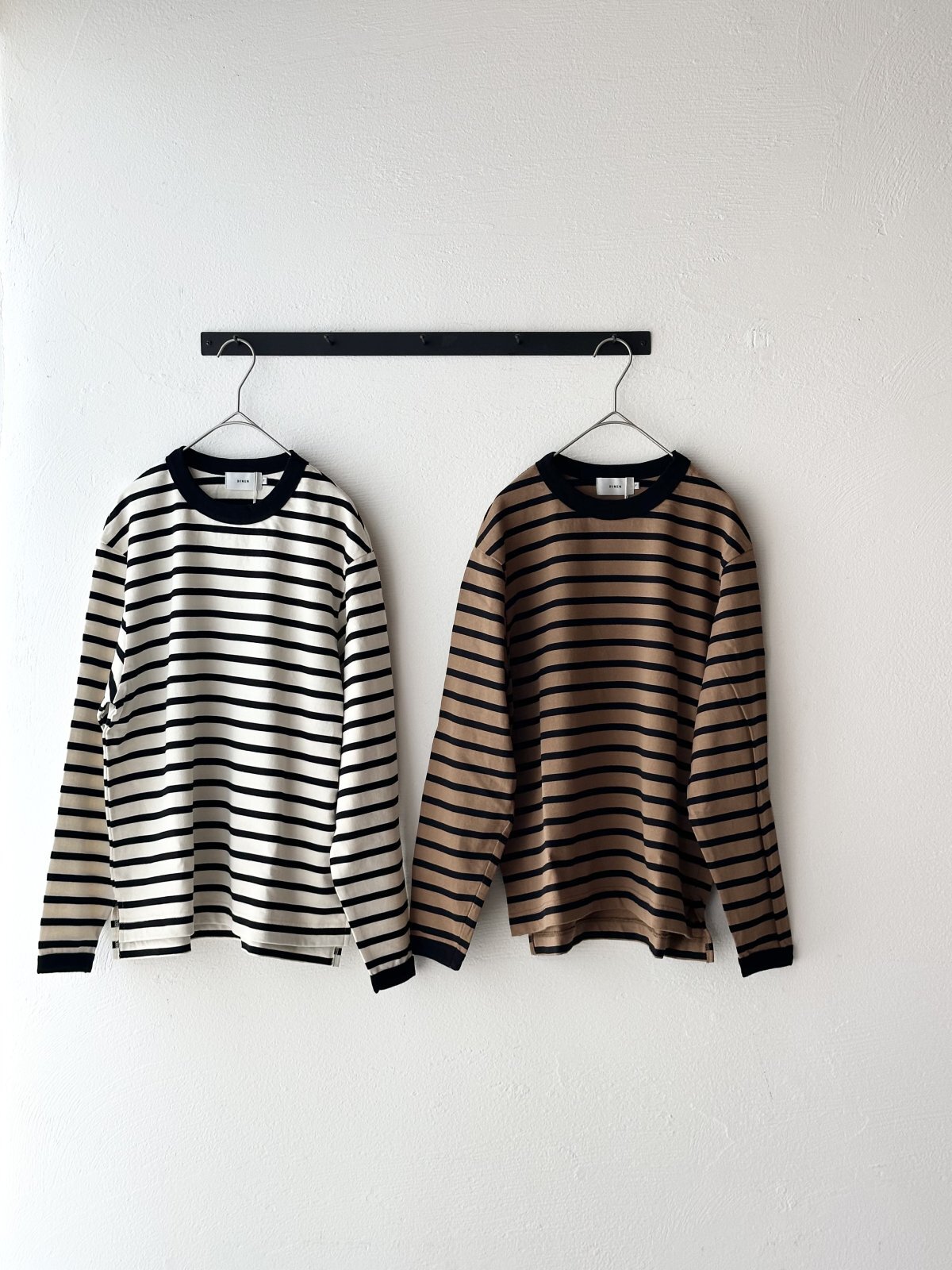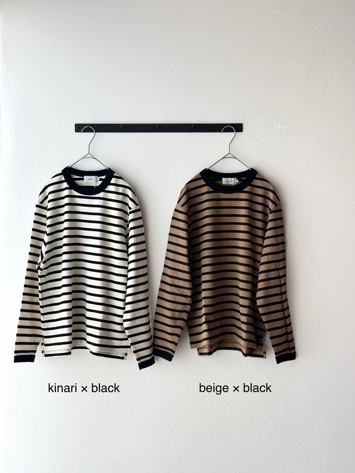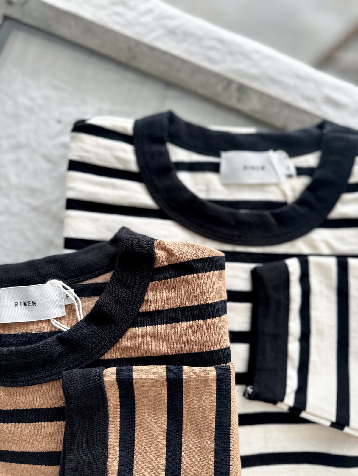 RINEN 24/1引き揃え度詰め天竺ボーダー クルーネック / beige × black