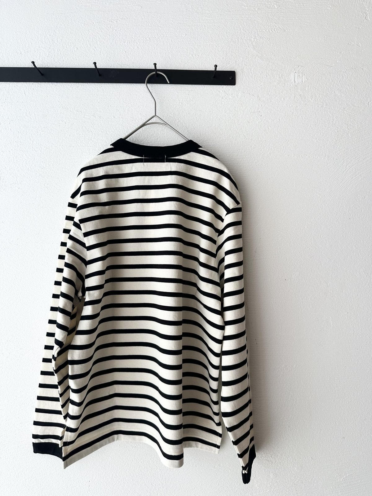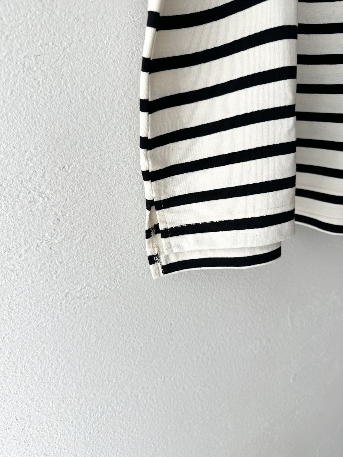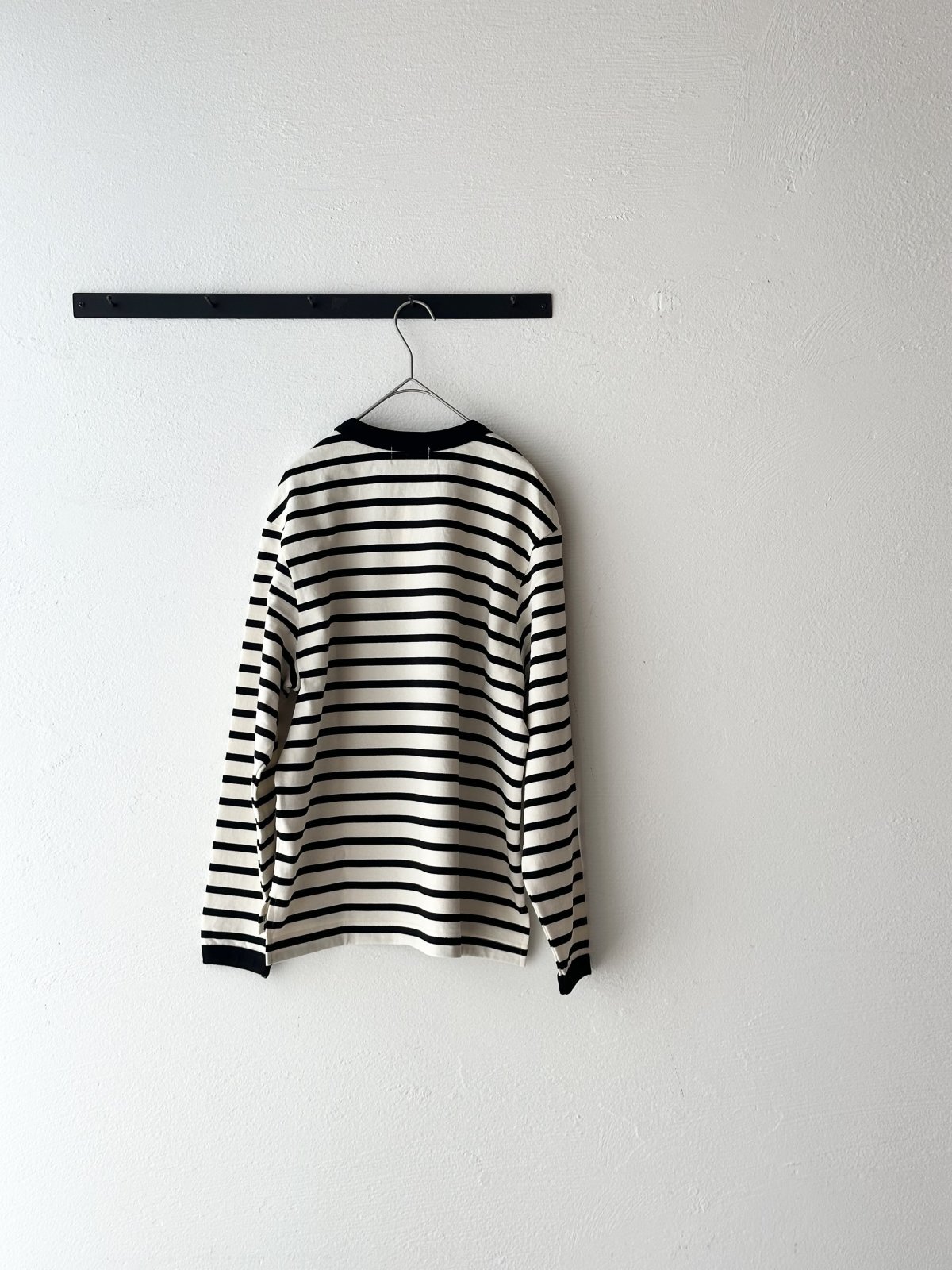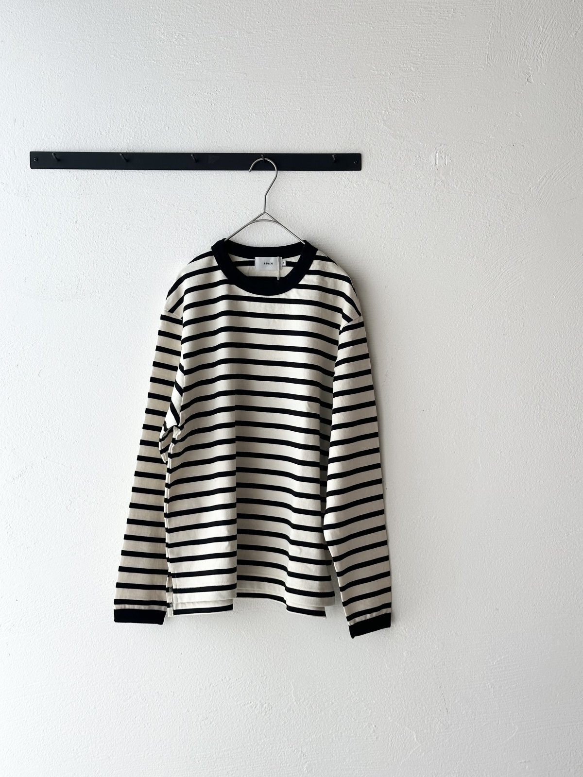 RINEN 24/1引き揃え度詰め天竺ボーダー クルーネック / beige × black