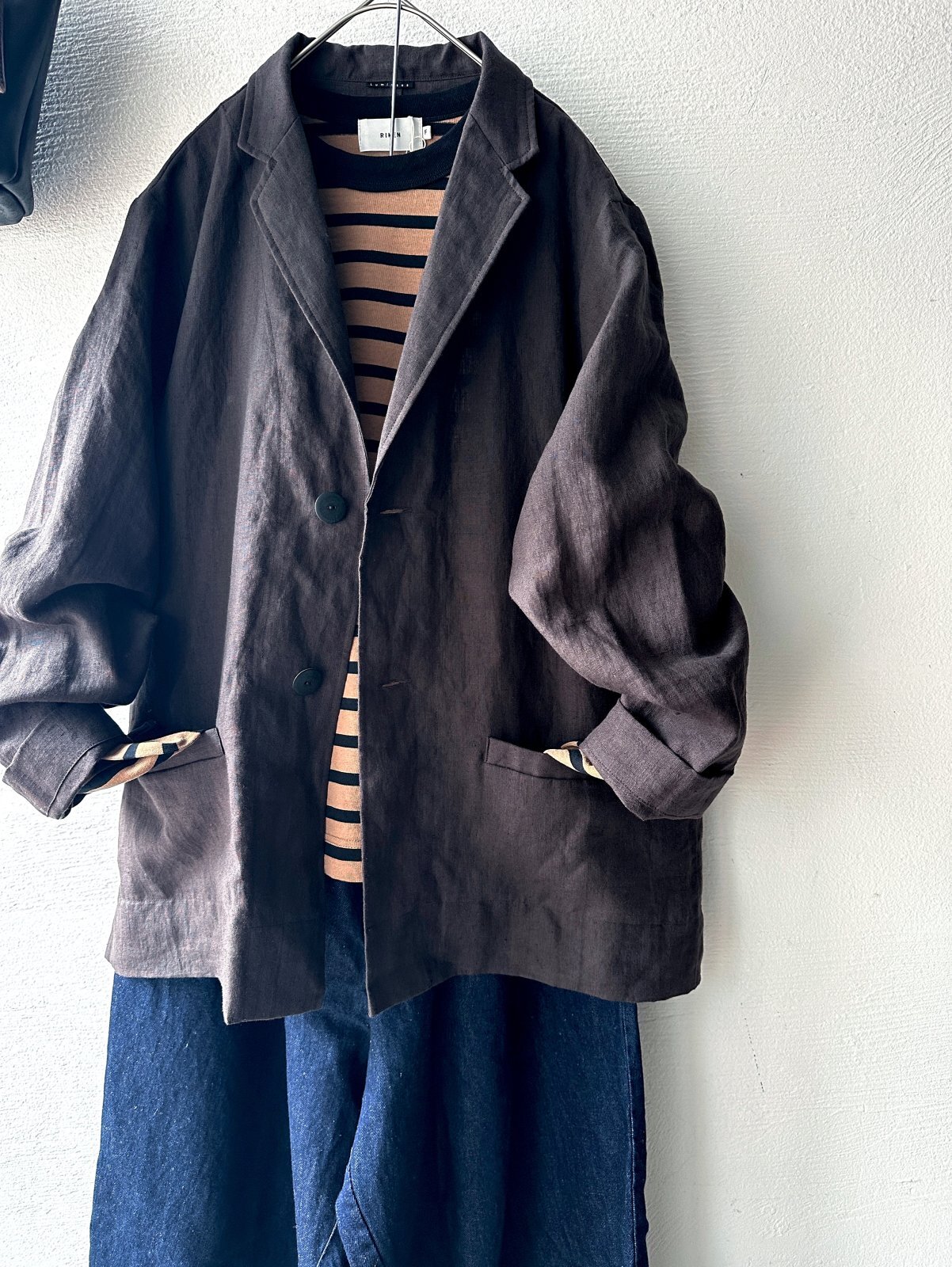Luminaes コルトレイクリネン ロングジャケット / dark brown