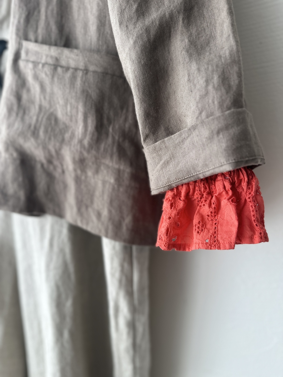 また、袖を折っても脱いでも綺麗に見えるように
