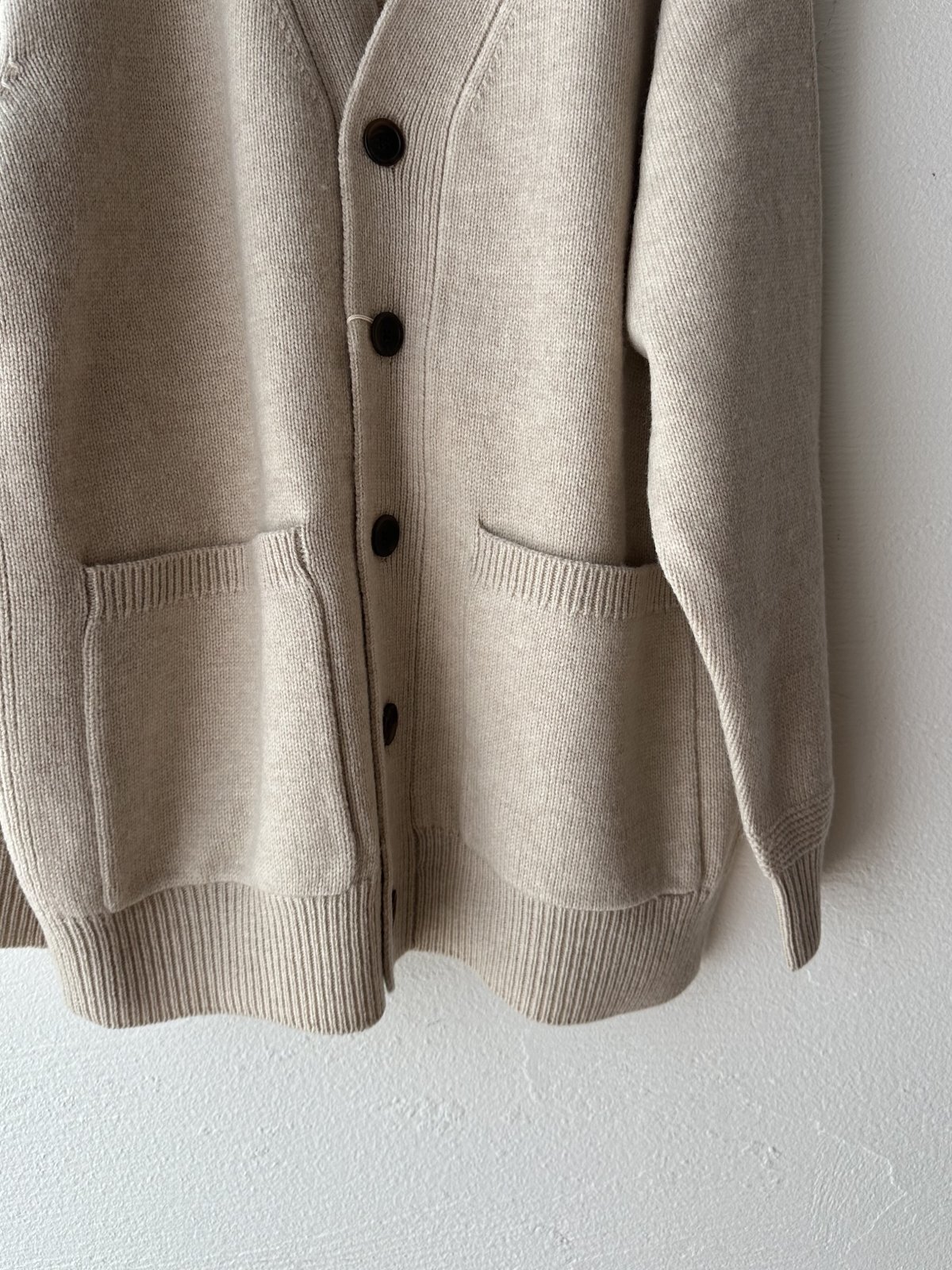 ラムウールを使用した 厚手でざっくりとした編地のカーディガン
