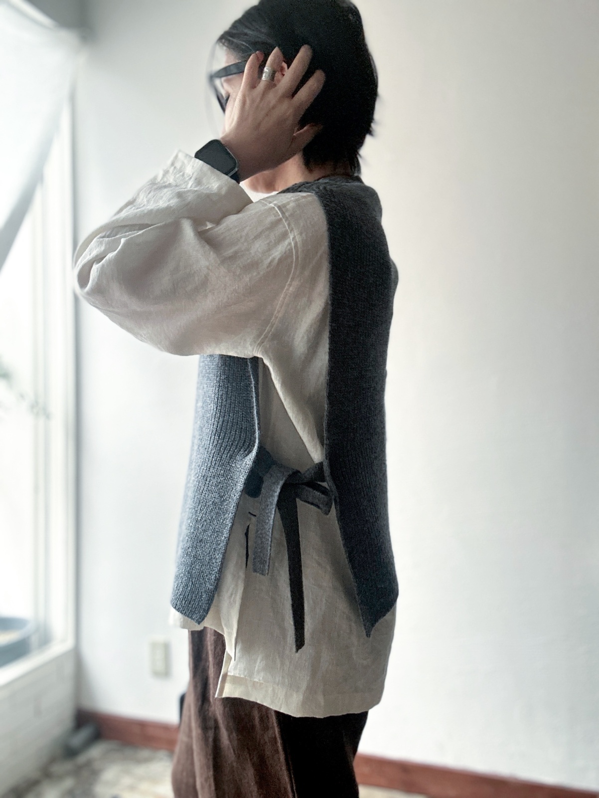 prit 2/15ラムウール7G片畦編み サイドリボンベスト