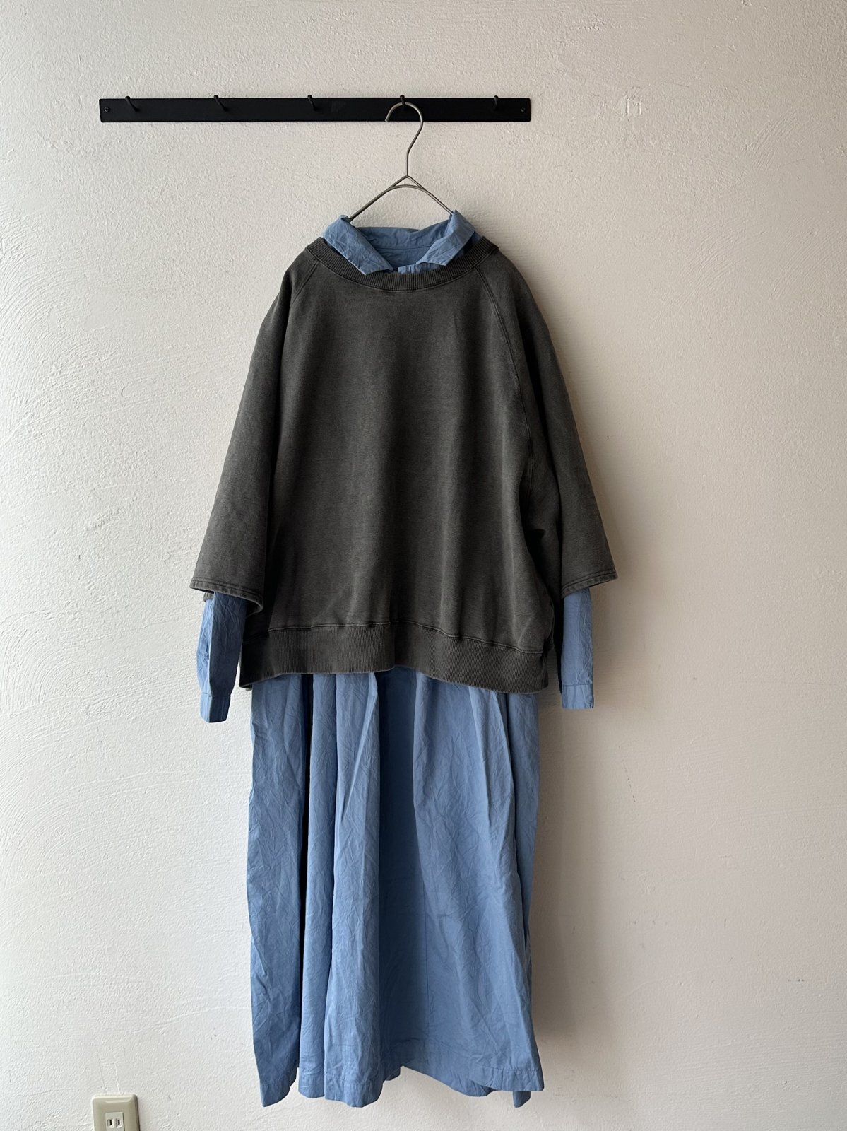 オープンカラーとボタンレスの前開きによりラフな雰囲気になります
