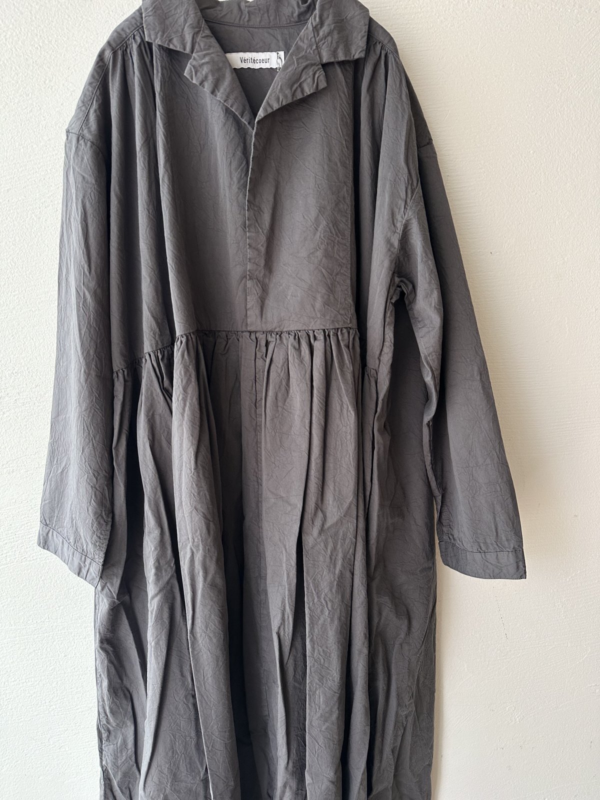 ウエストにたっぷりとギャザーを寄せたボリュームのある A ラインワンピース