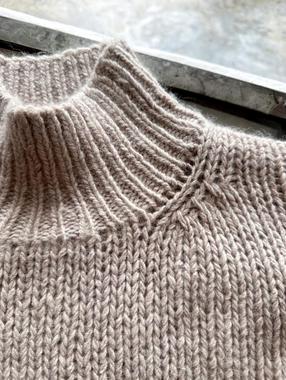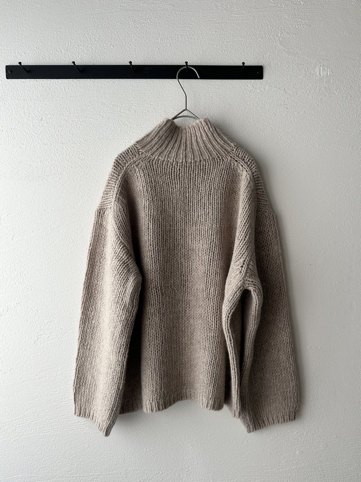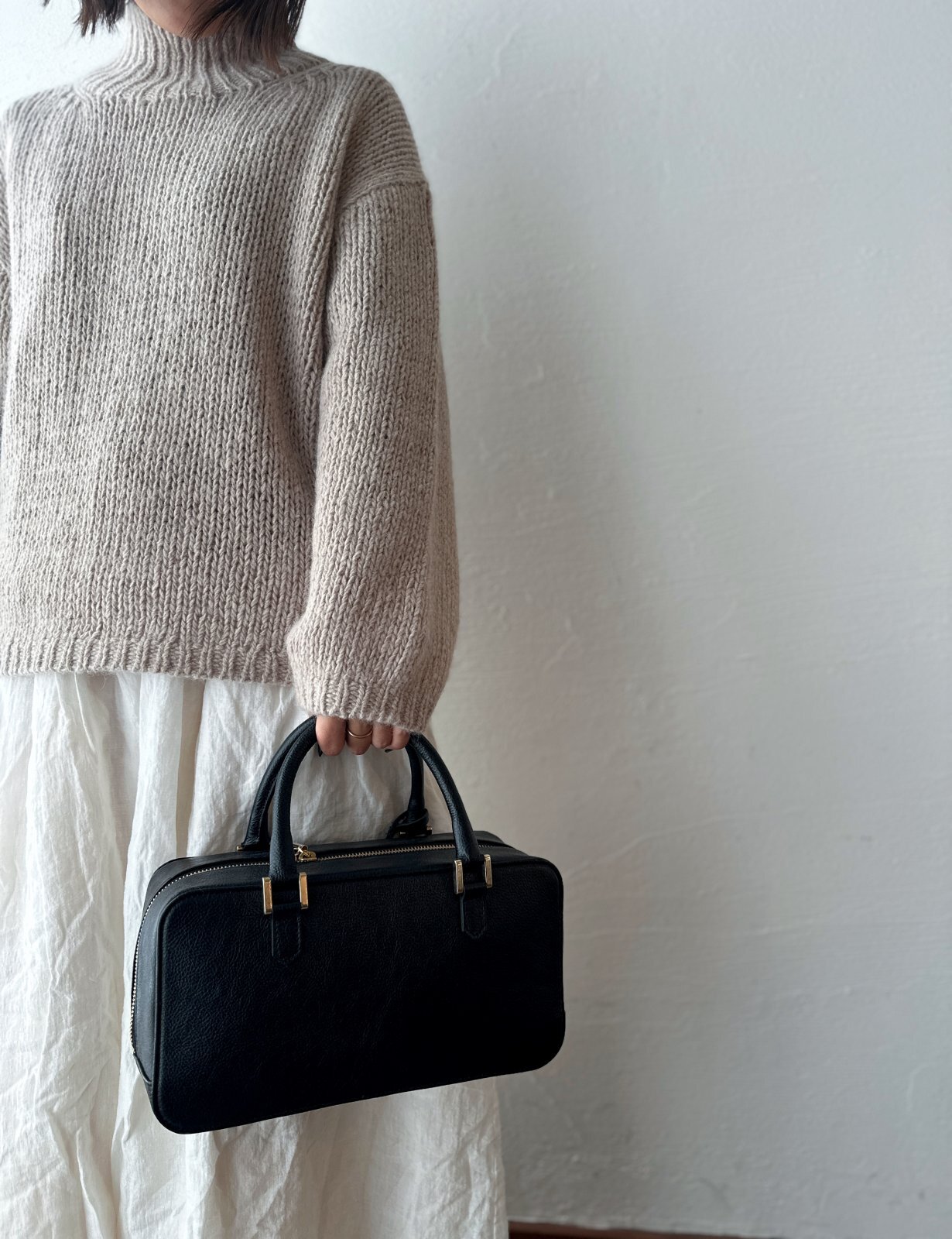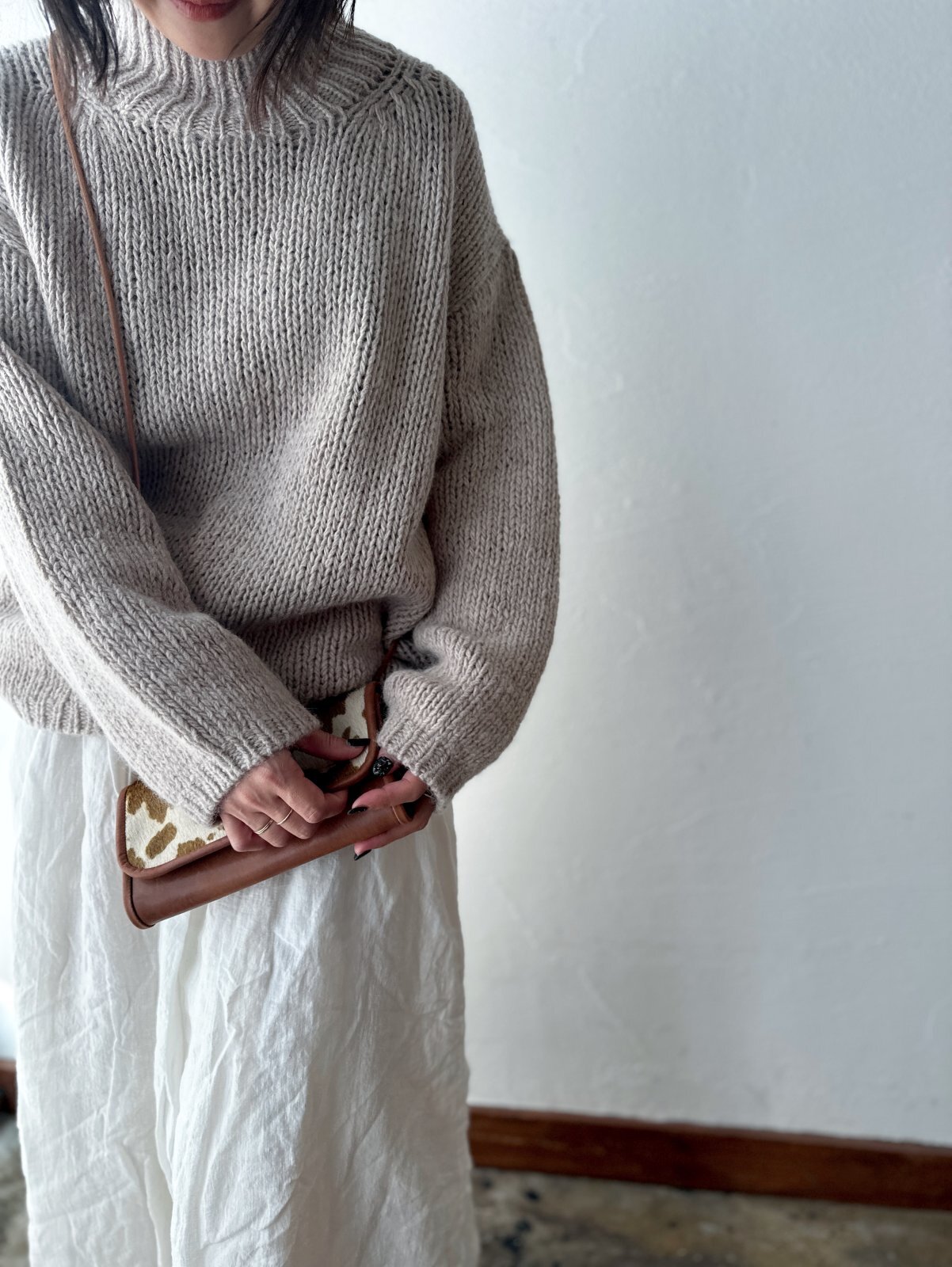ハイネックはハンドニット(手編み)にすることでより素材のもつ風合いの良さを引き出しました。
