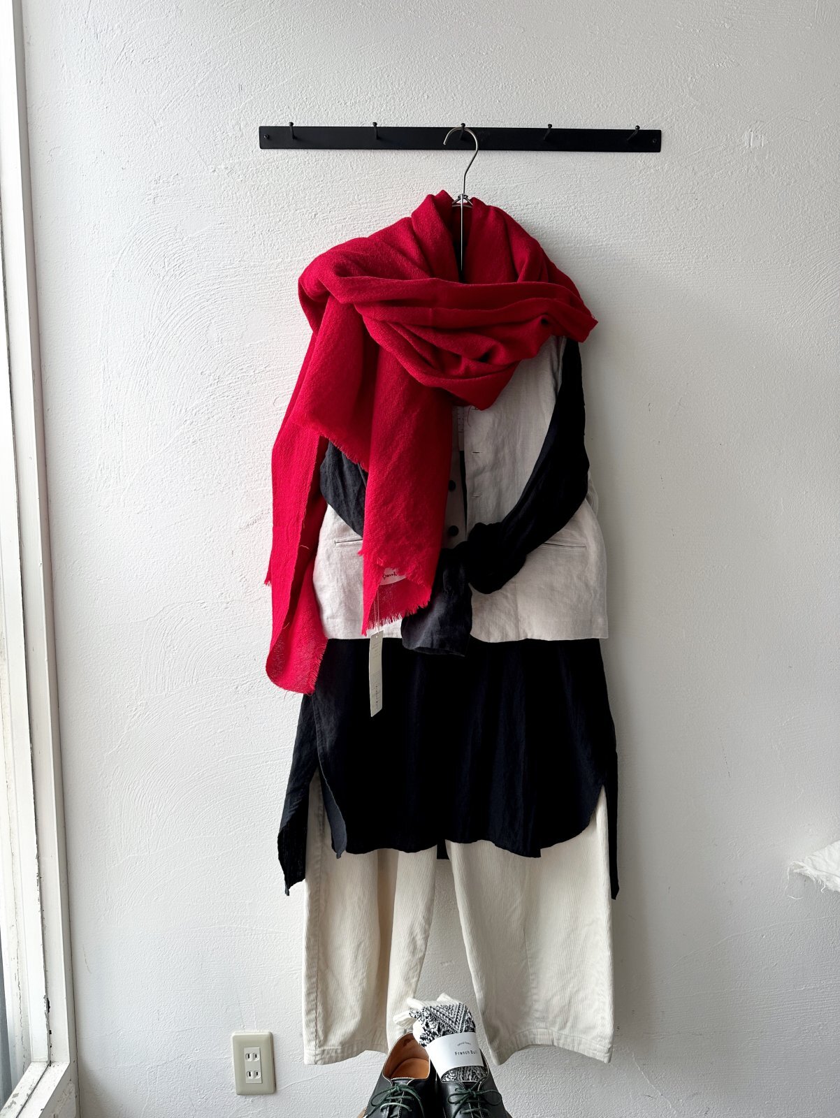 ニットやワンピースの上からも重ねて楽しめます。