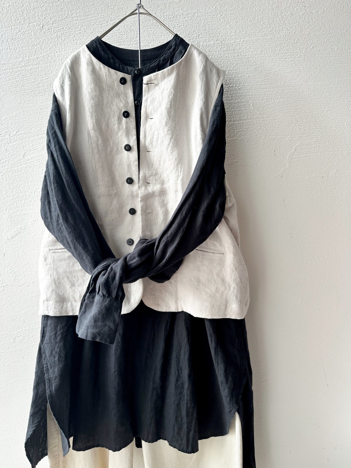 毛リネンのクルーネックベスト。