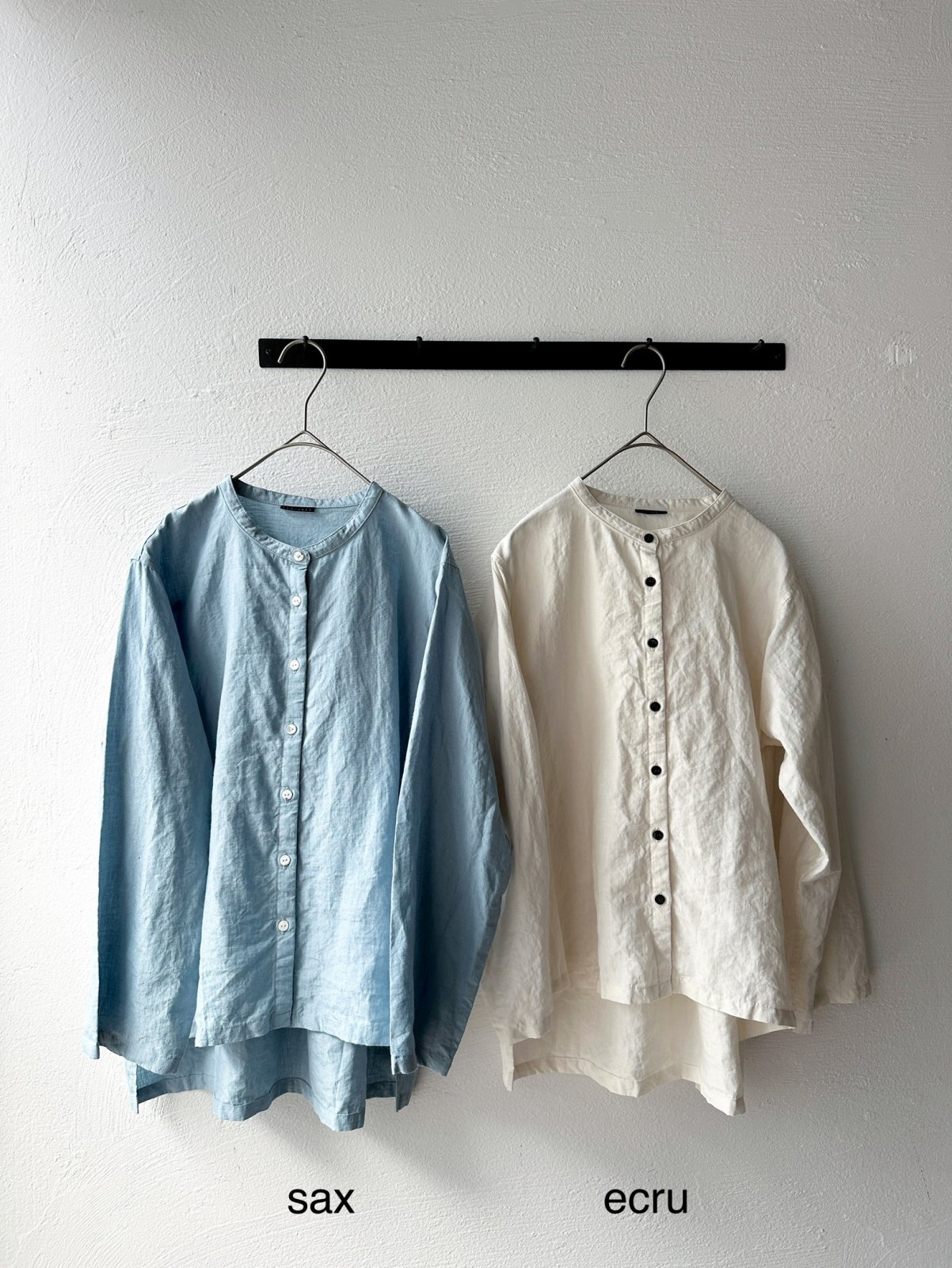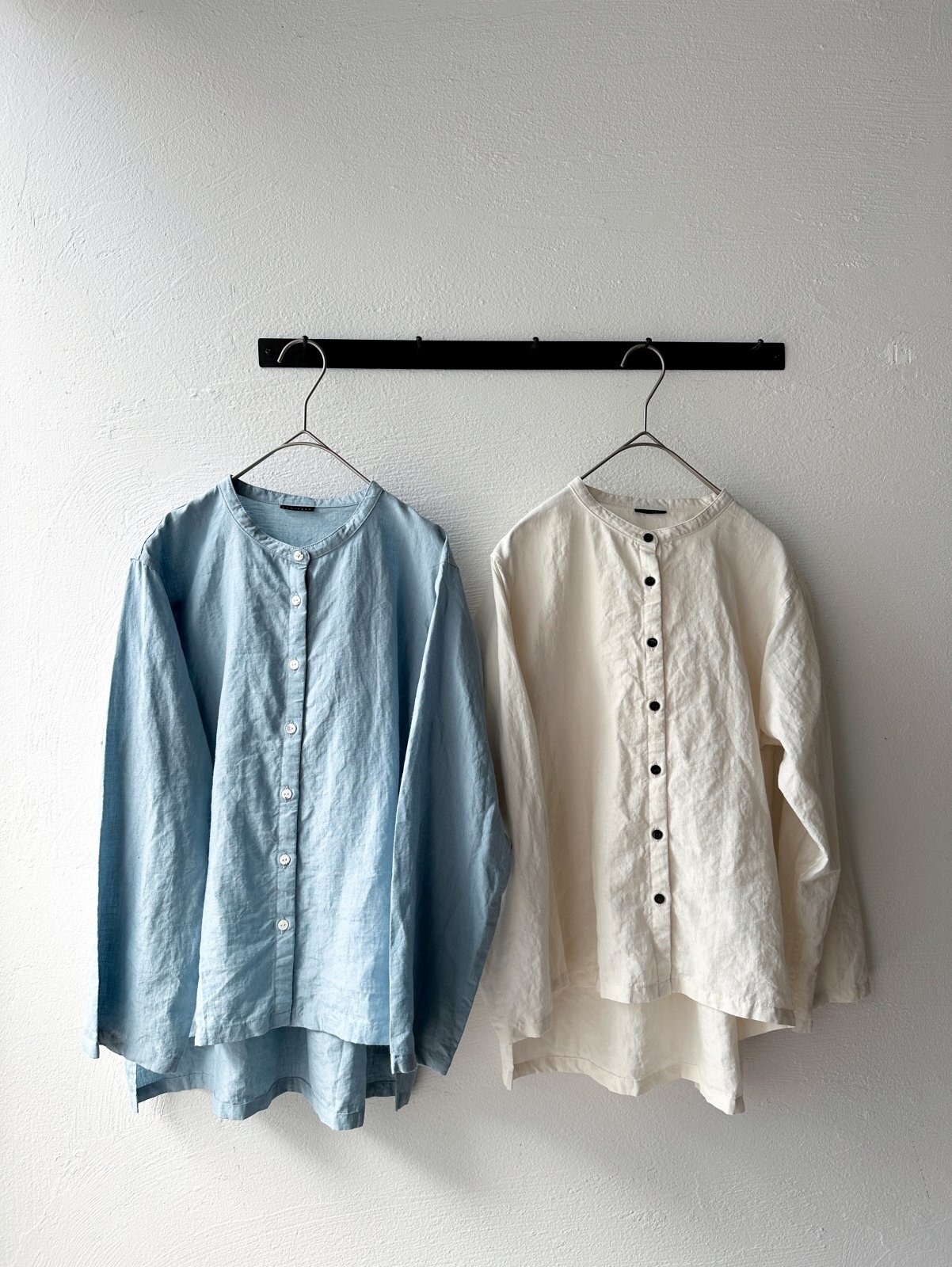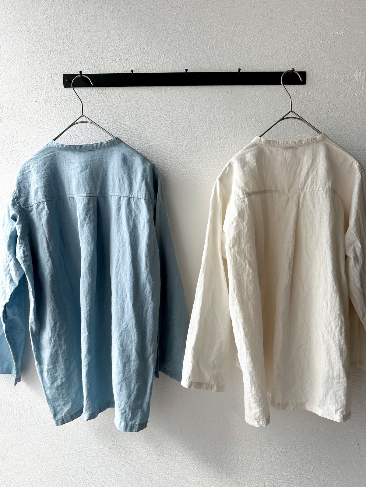 Luminaes 60コルトレイクリネン バンドカラーシャツ