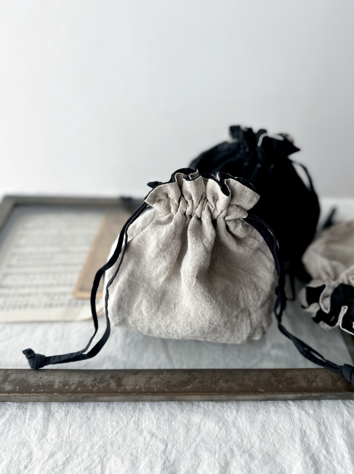 Luminaes 手染めリネン リバーシブル巾着 【クリックポスト発送可】
