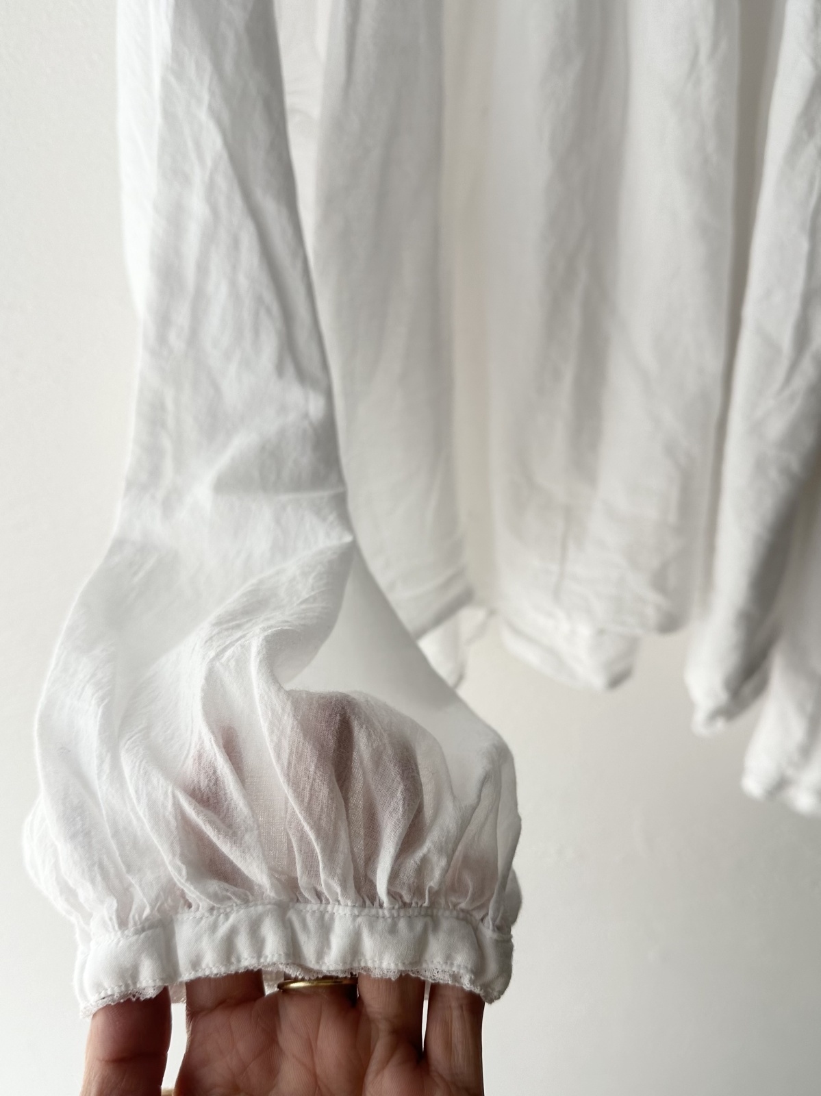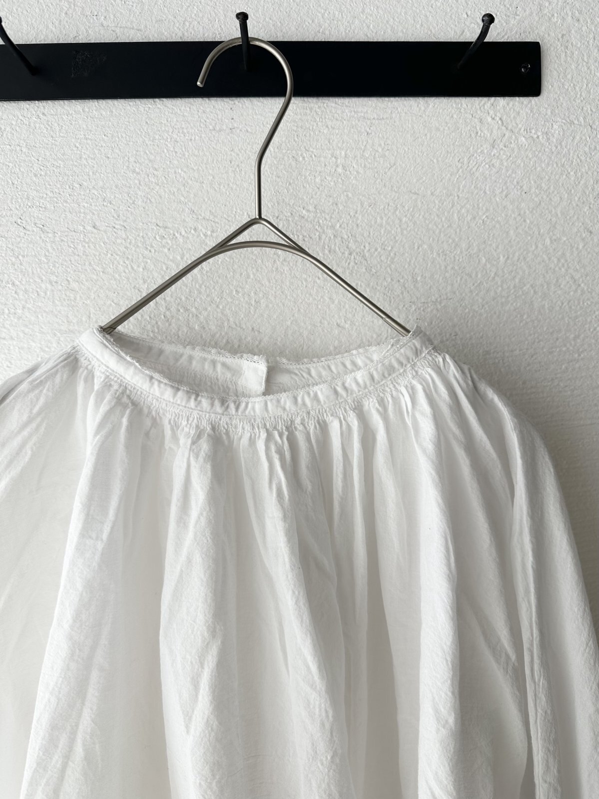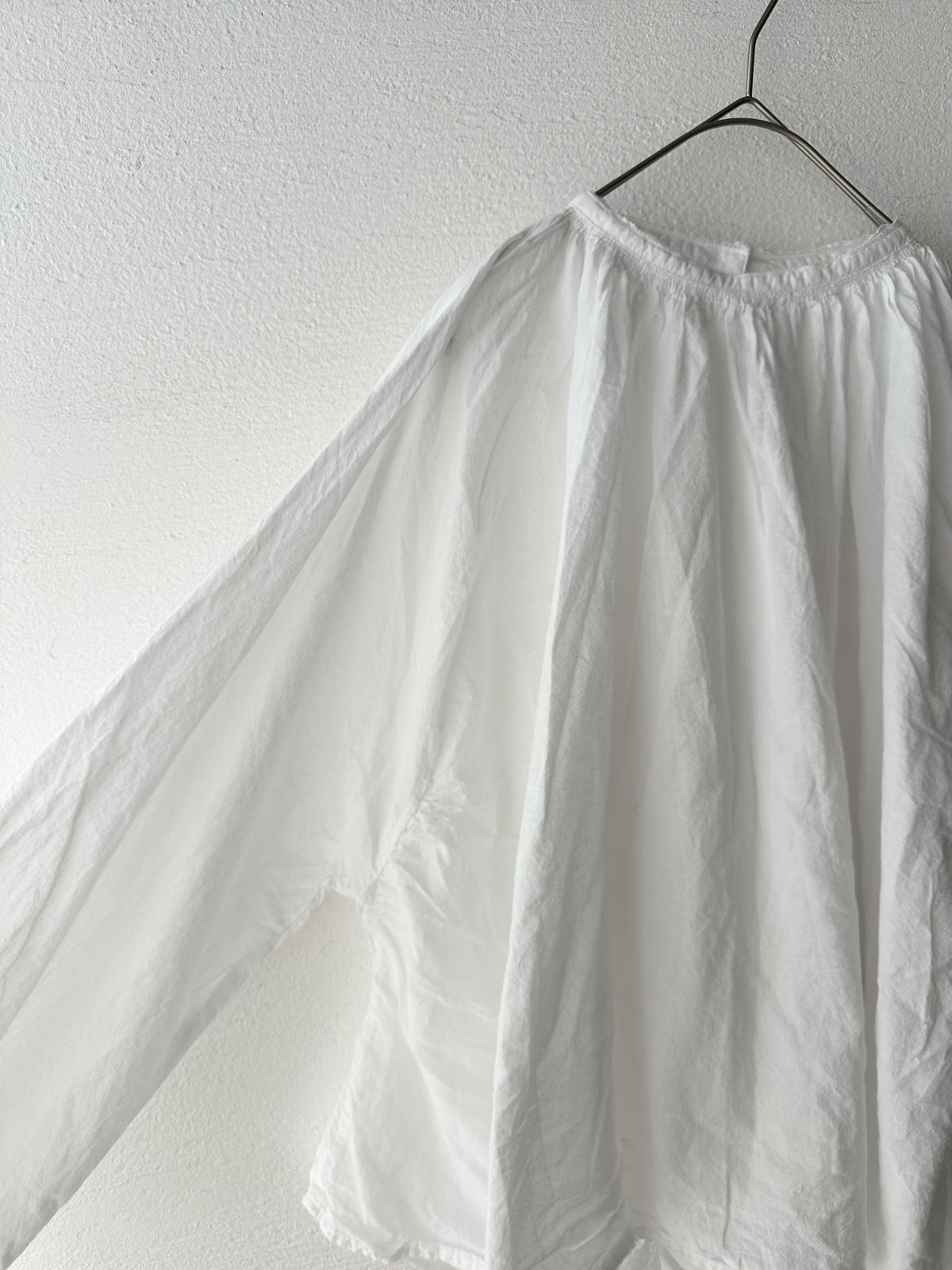 衿ぐりと袖口にたっぷりとギャザーを寄せたAラインシルエットで