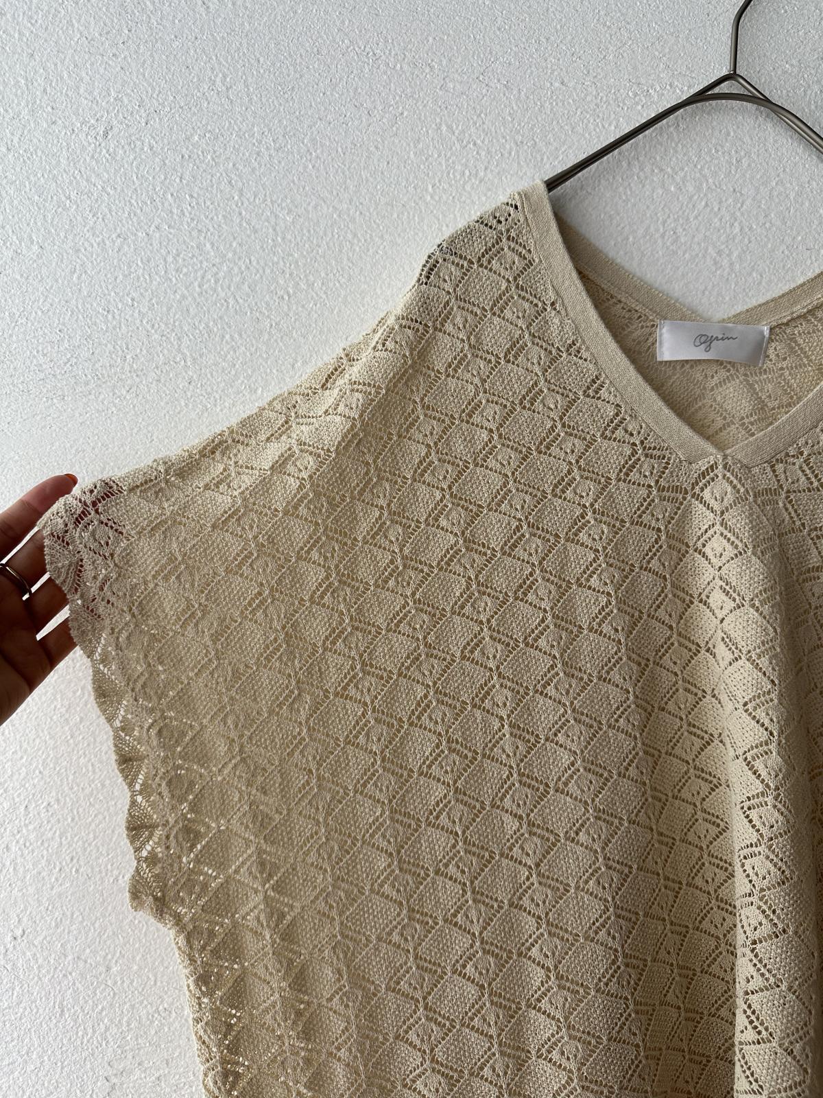 grin コットンレースニット ポンチョベスト