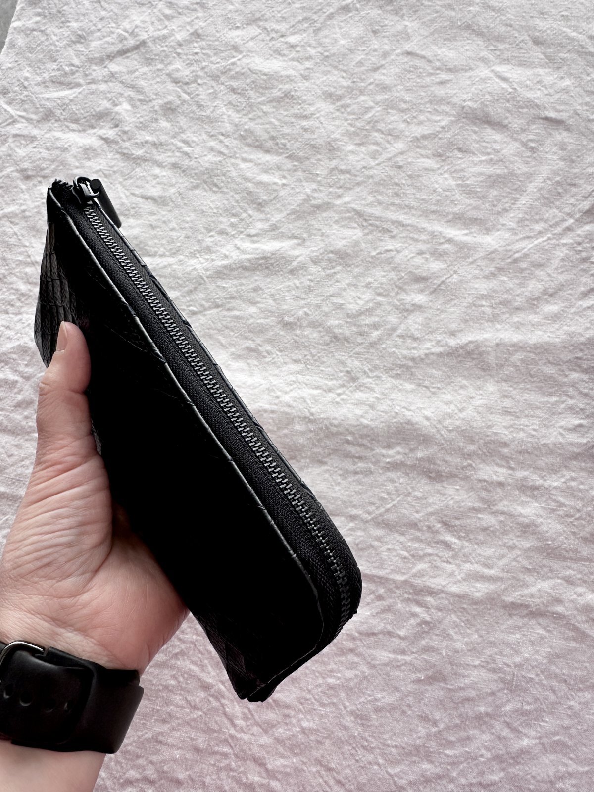 ジッパーまでマットな黒の、とても男前な財布。