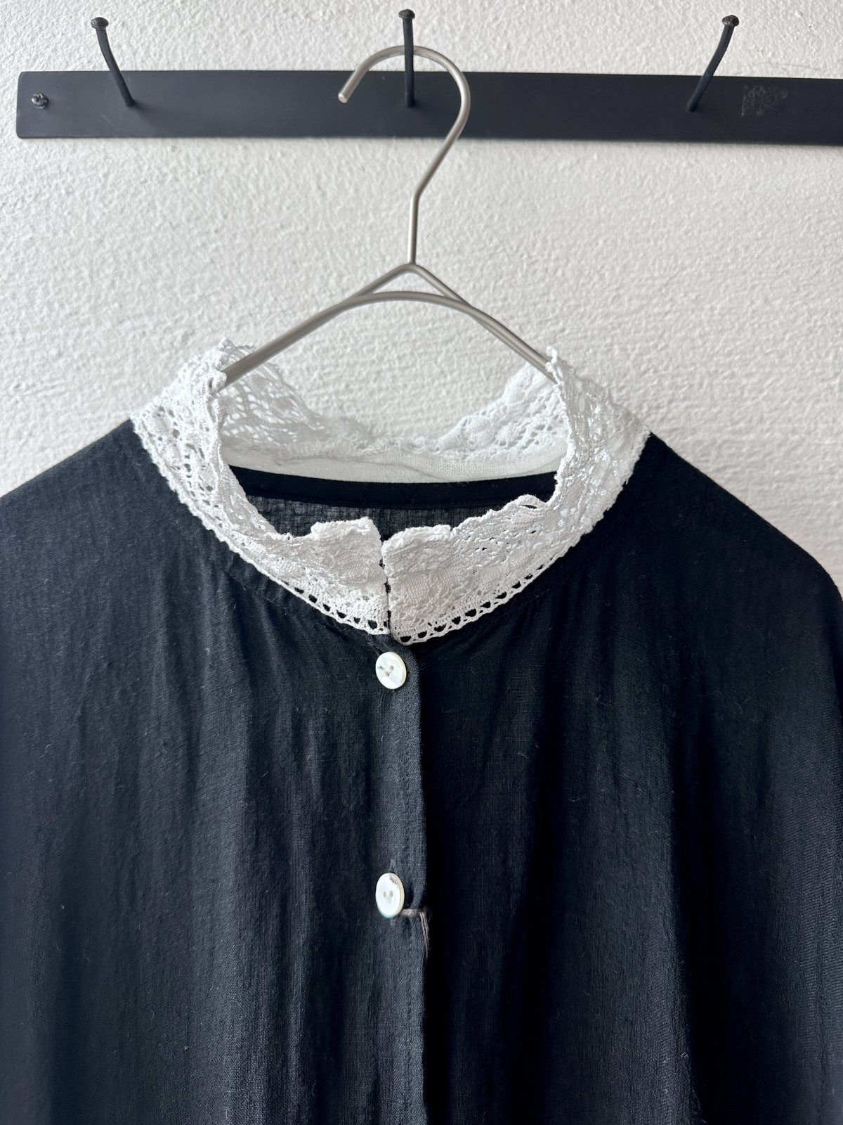 襟元には幅広の国産コットンのレースをつけています。