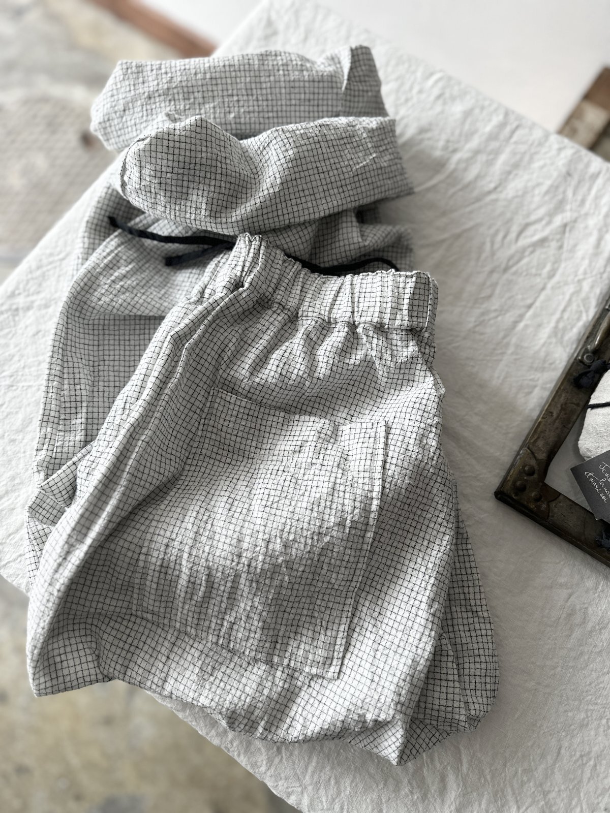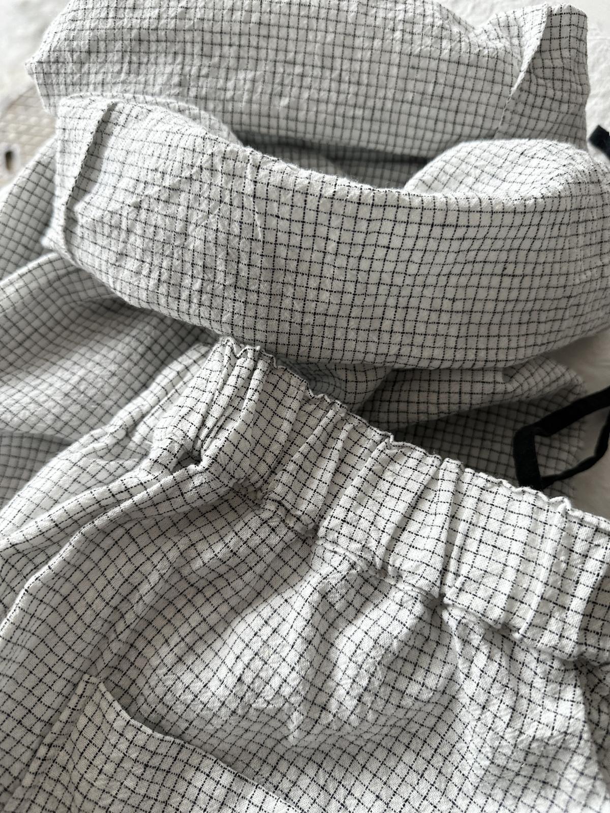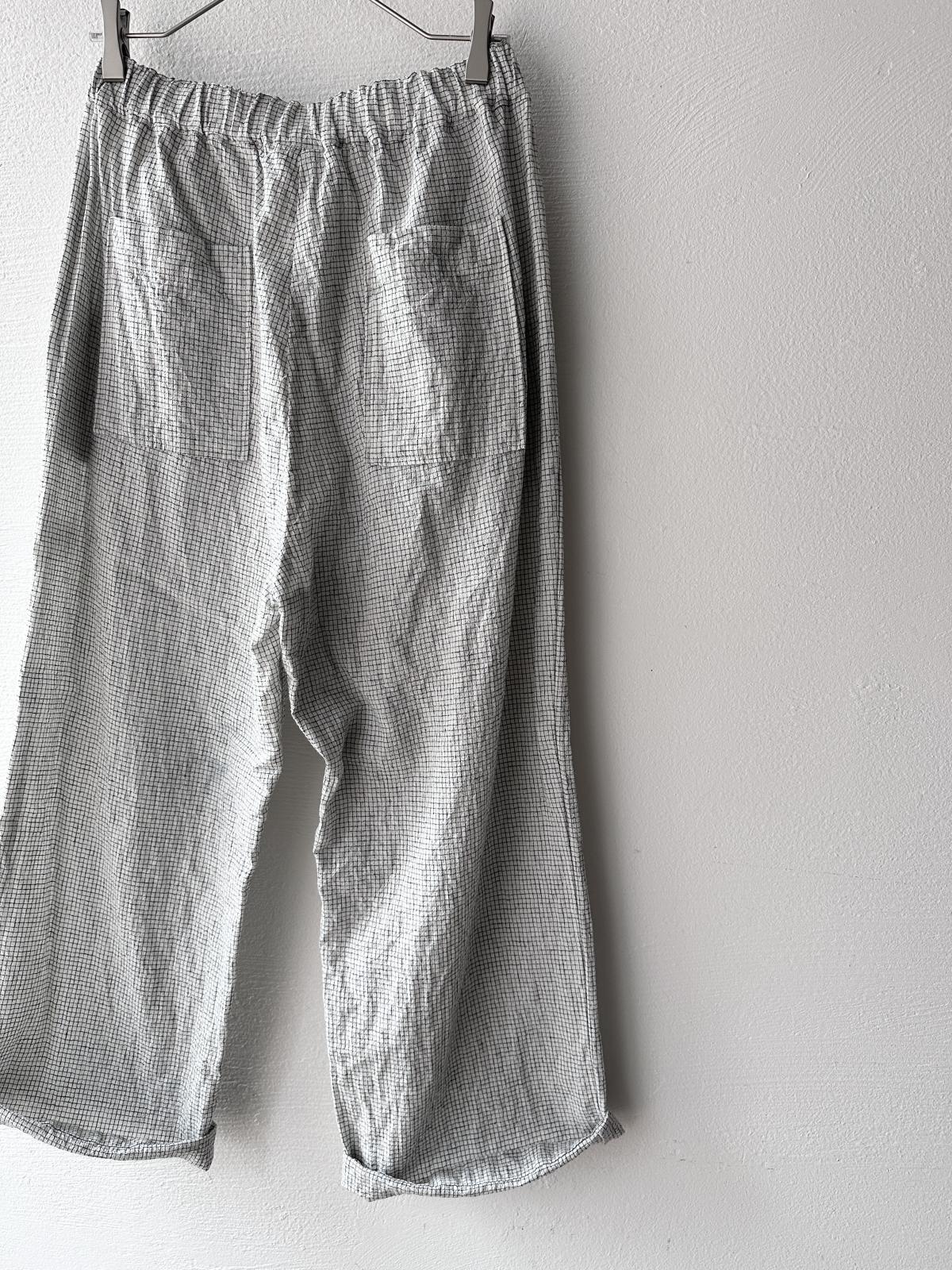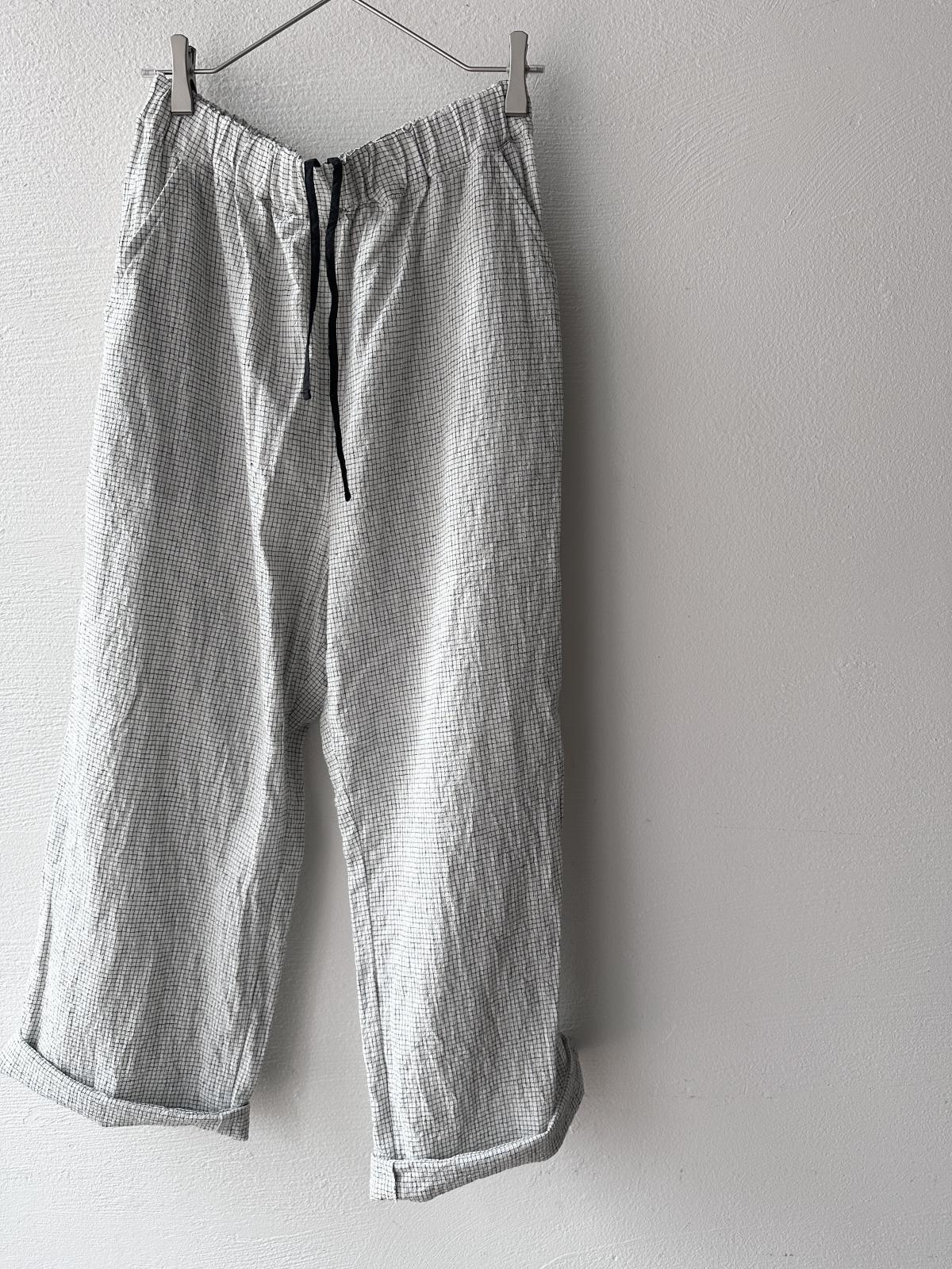 綿麻ピンチェックが爽やかなワイドパンツです。