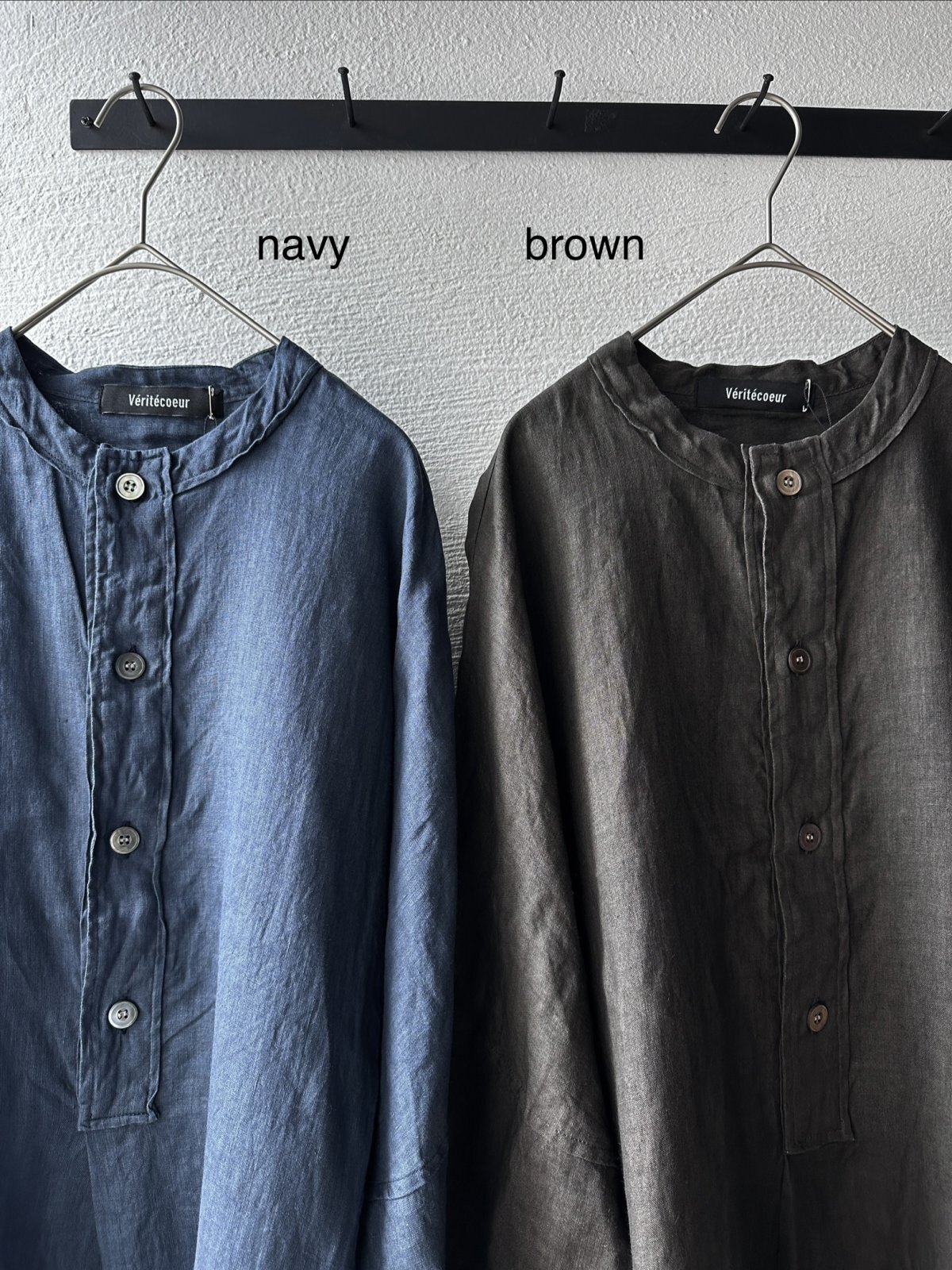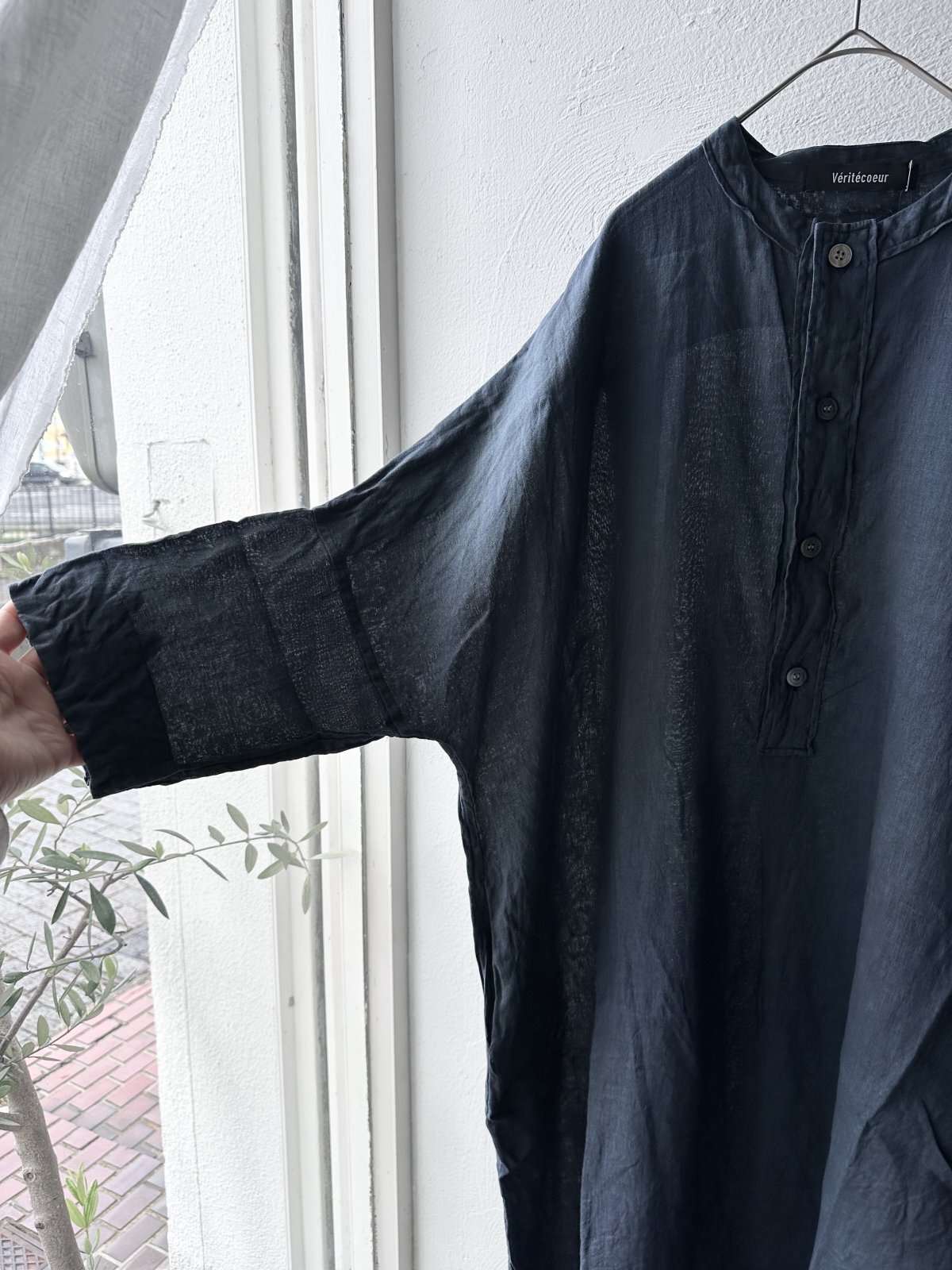 Véritécoeur 墨染めリネンヘンリーネックワンピース [VC-2841]