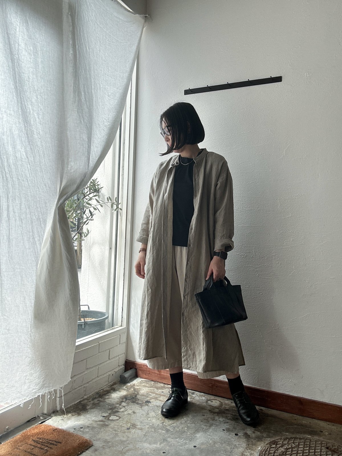 Luminaes ベルギーリネン高密度ウェザー ジャケットコート / black