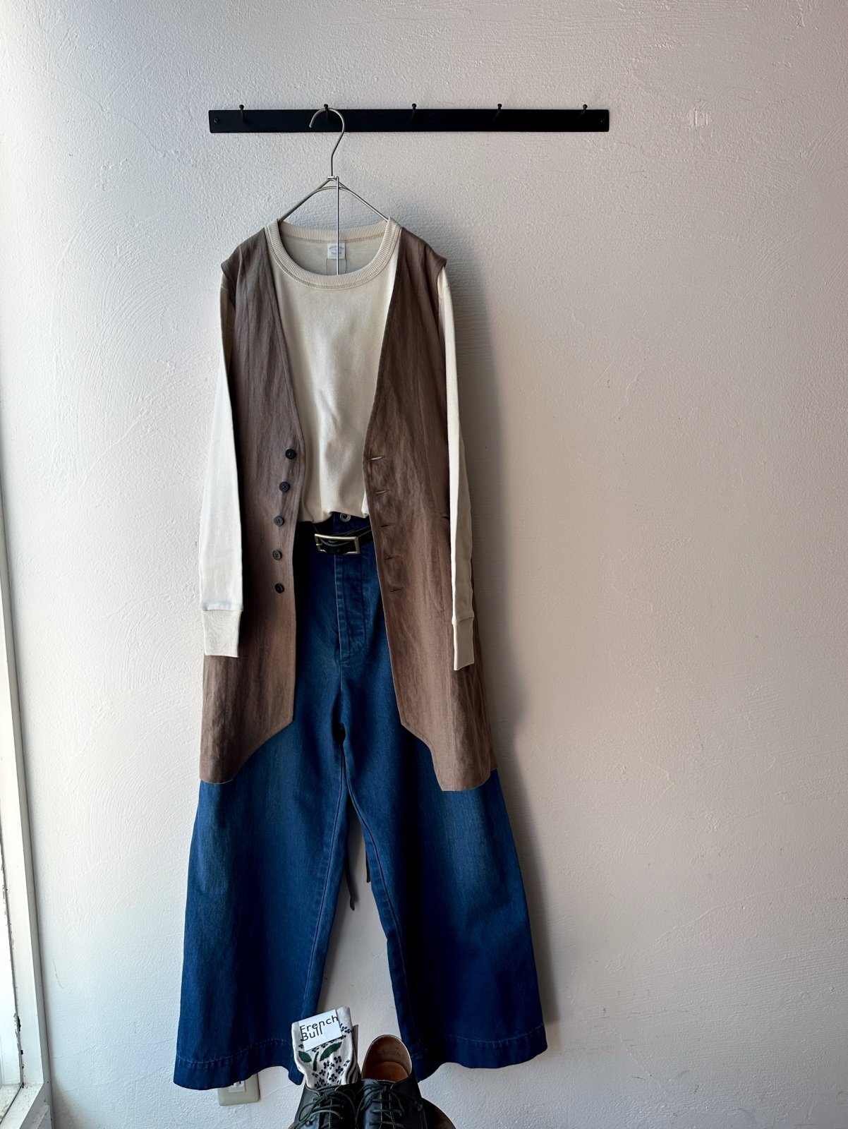 Luminaes コルトレイクリネン ストリングロングベスト/ moca brown