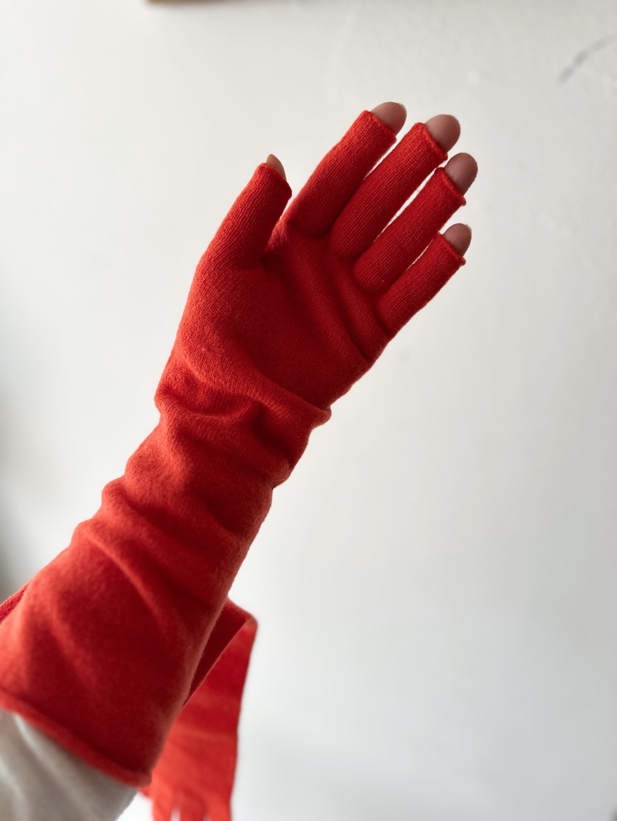 ニュージーランド南島に位置するクック山周辺の山岳地帯のみで飼育されている平均繊度16μのカシミヤに匹敵する超極細ウールを使用した指先フリーのアームウォーマーです。