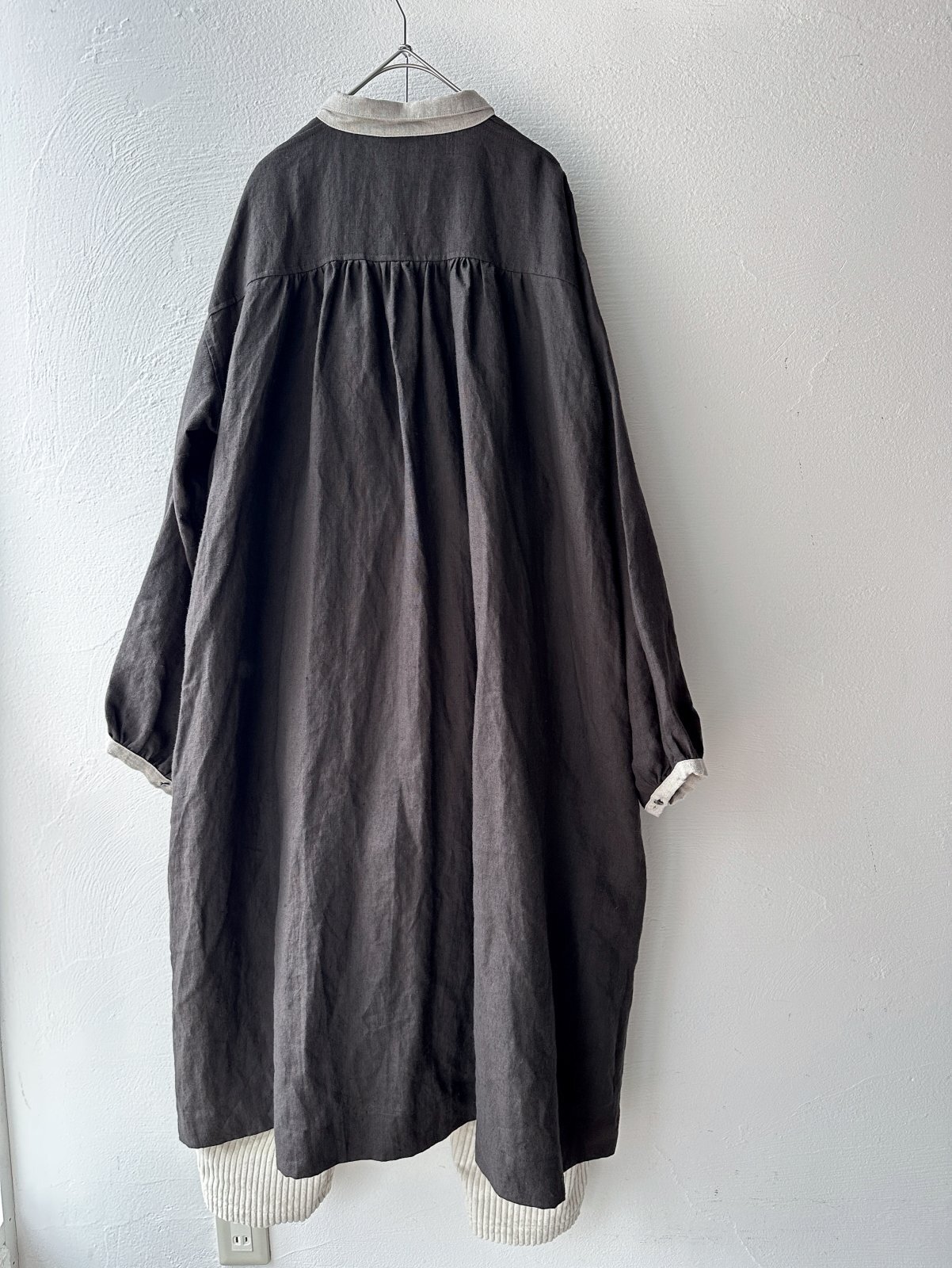 Luminaes ベルギーリネンキャンバス チビ襟バイカラーギャザーOP / kinari