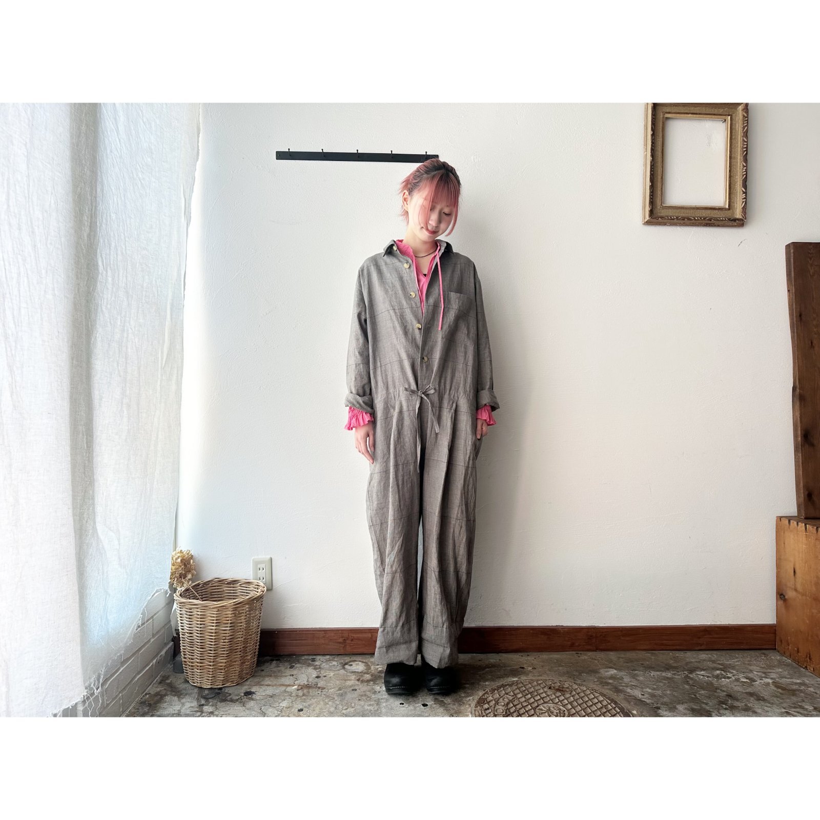 オリジナルのグレンチェック生地を使用したオールインワン。