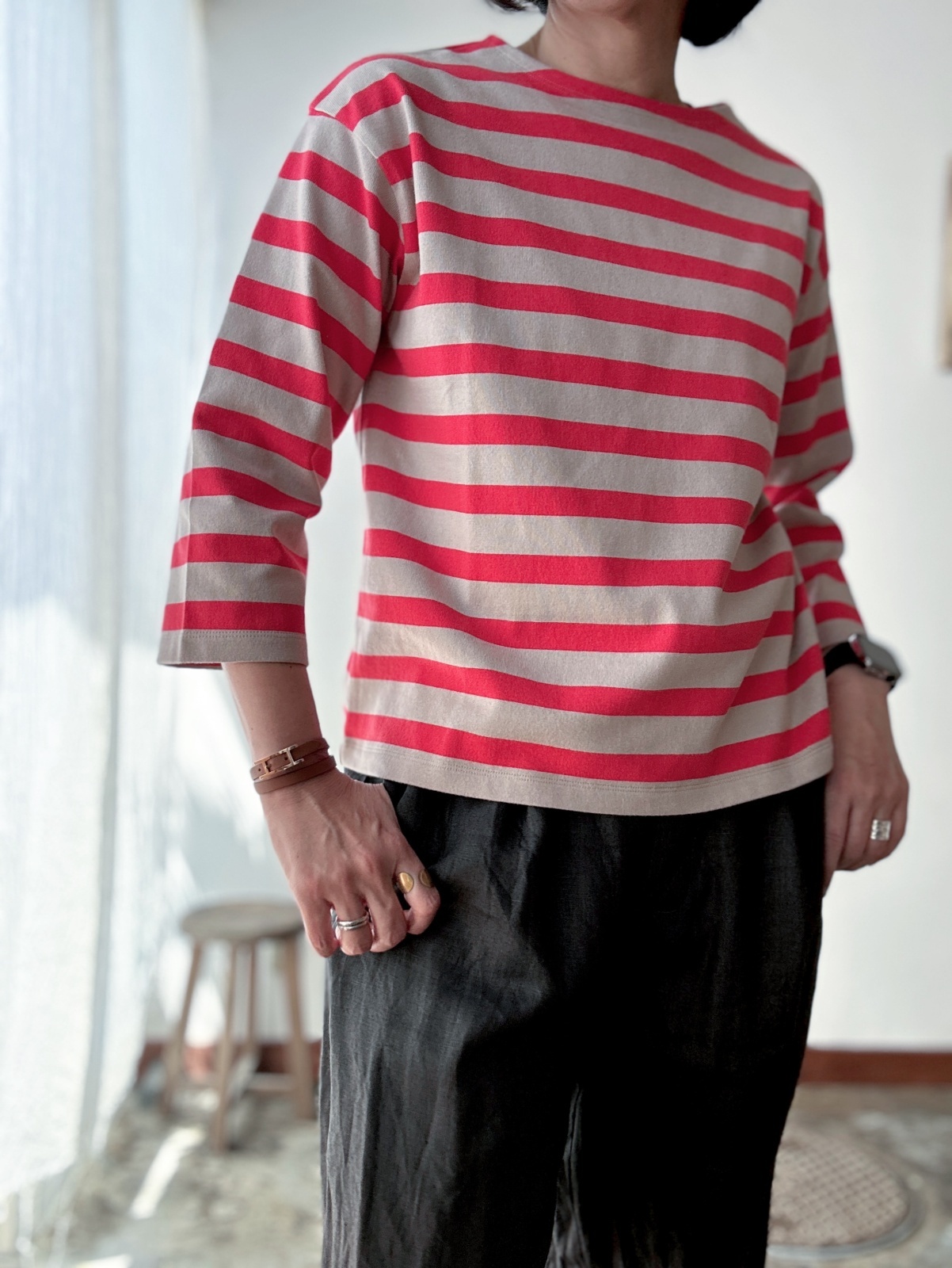 nouvelles du paradis ヴァン天竺ボーダー 8分袖プルオーバー / orange