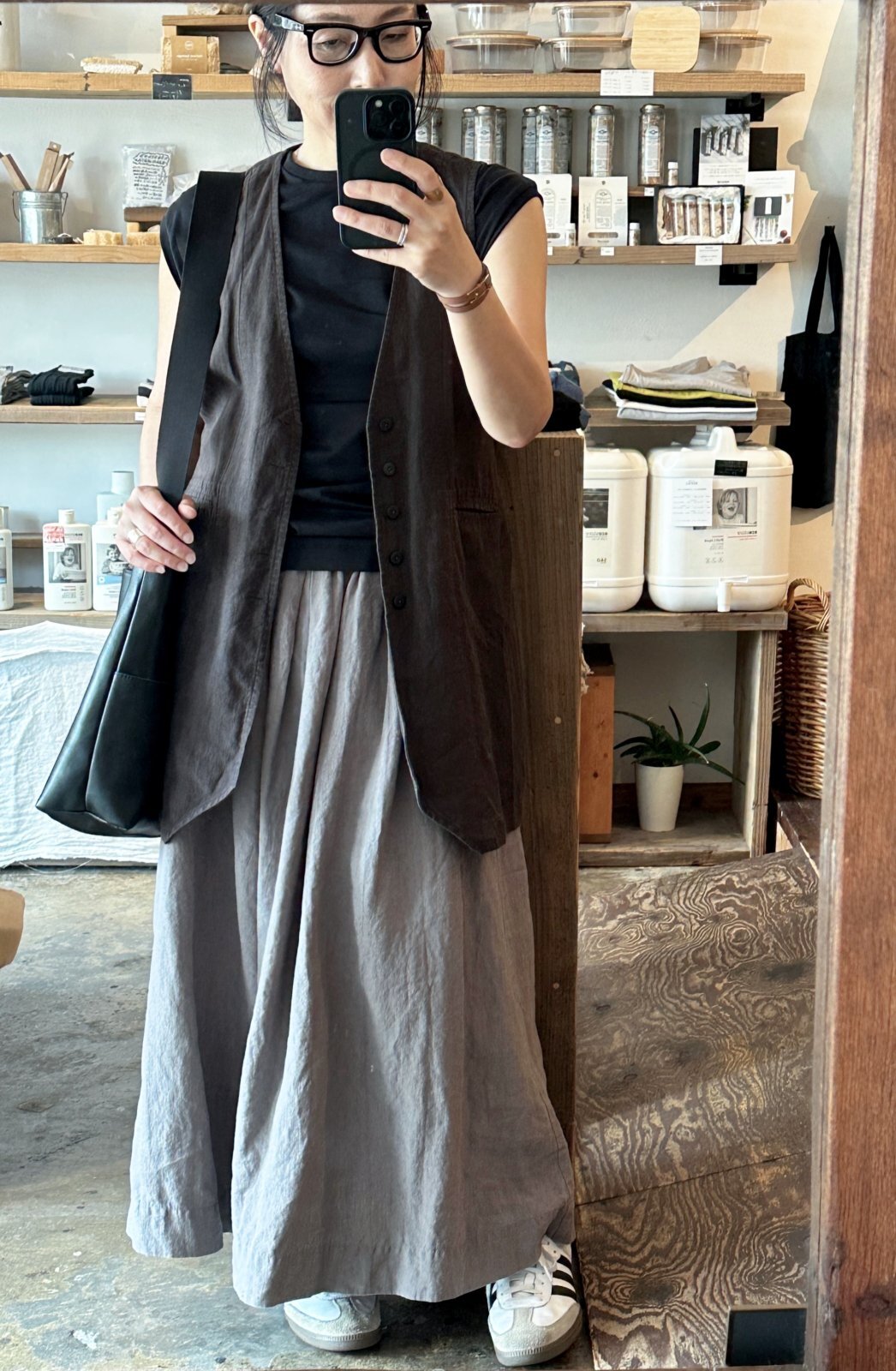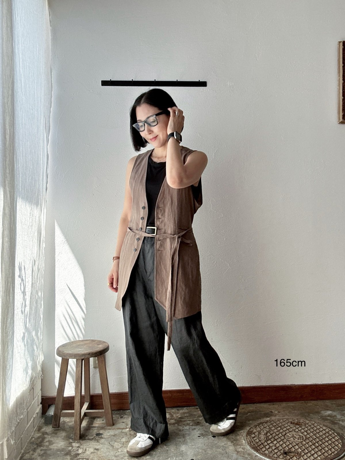Luminaes コルトレイクリネン ストリングロングベスト / dark brown
