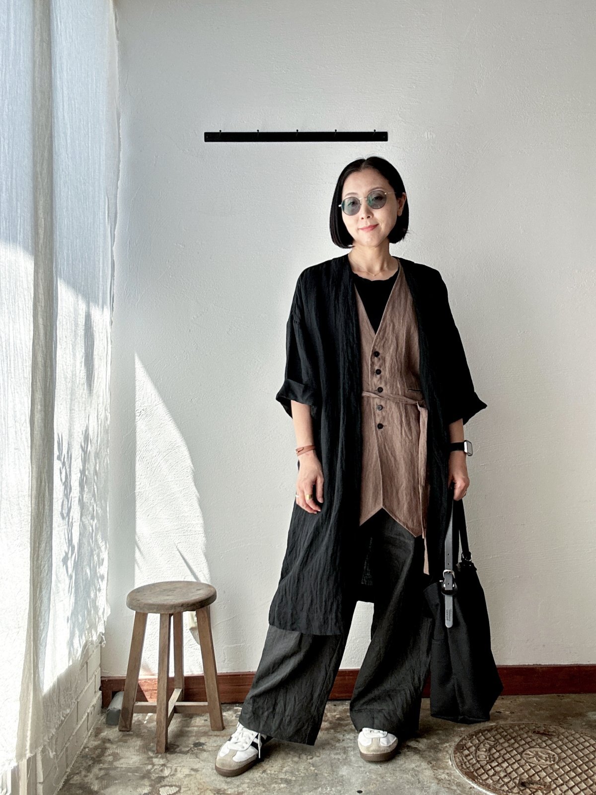 Luminaes 手染めリネン ローブカーディガン / black