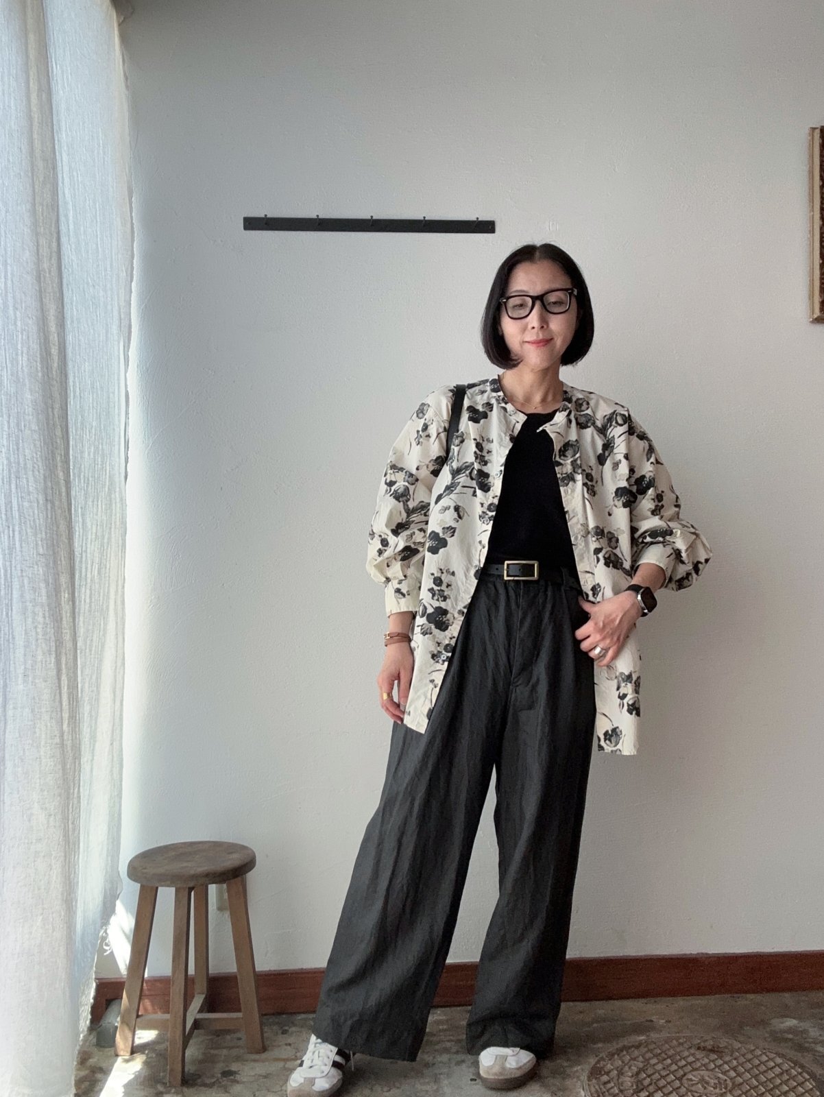 ぼかしたようなフラワープリントが素敵なロングシャツ。