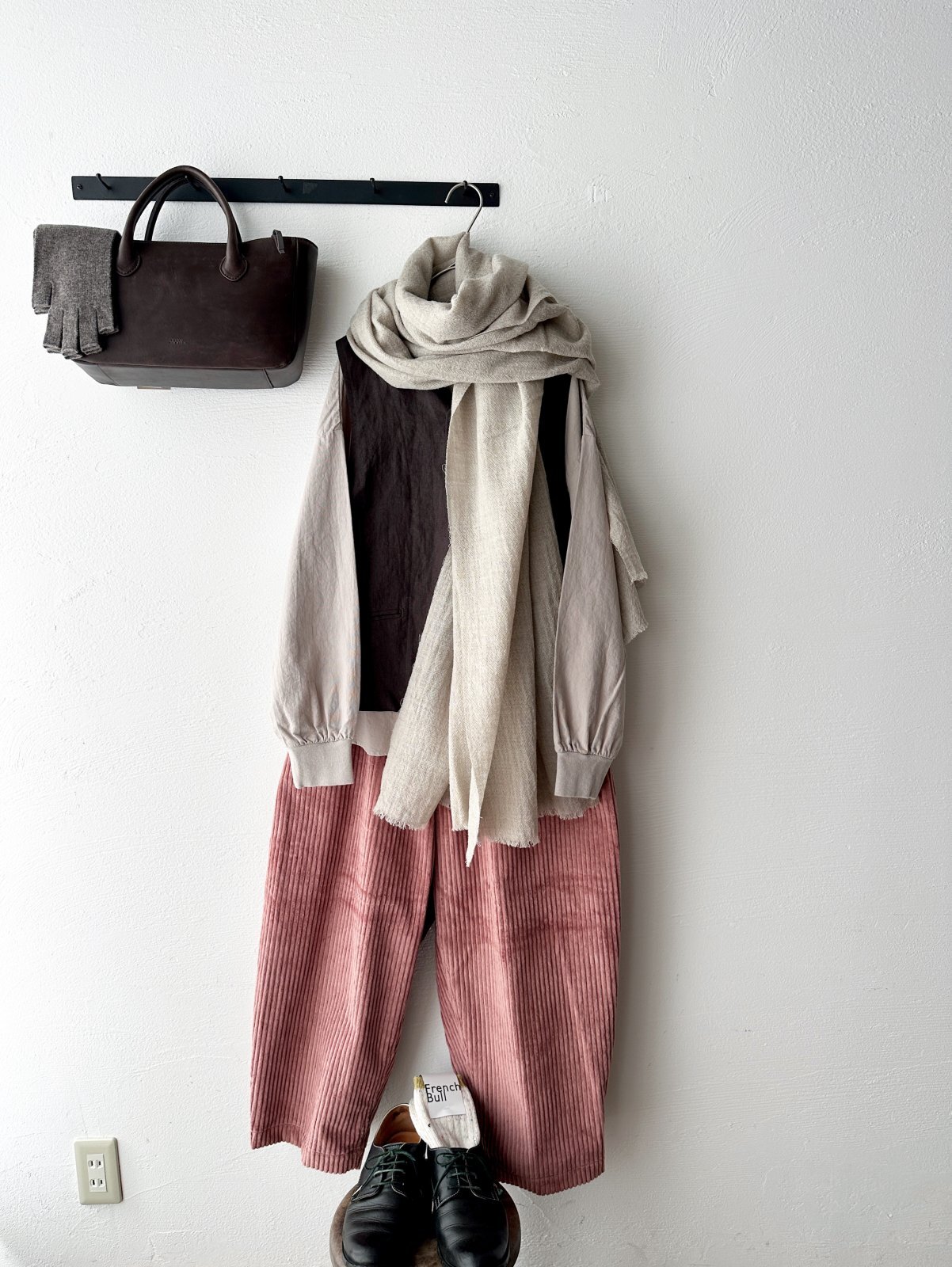 Luminaes ゆったりコーデュロイパンツ / antique white , pink