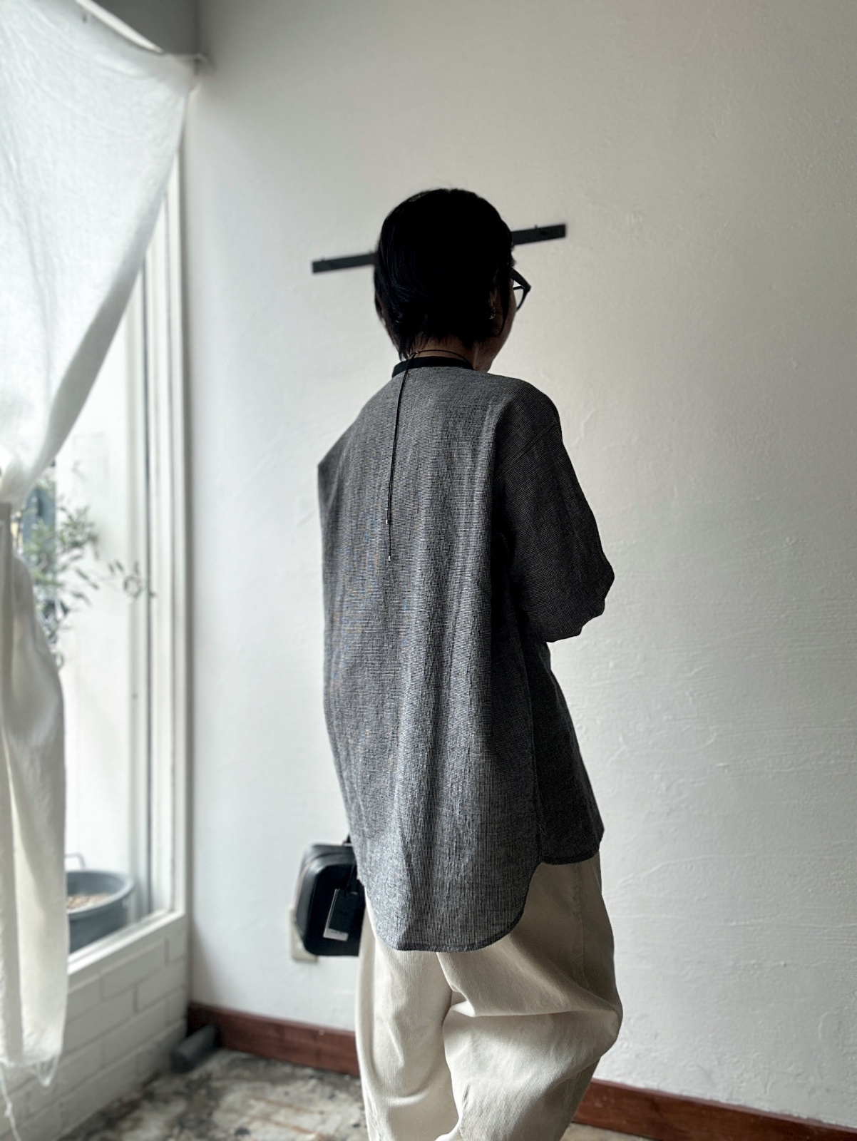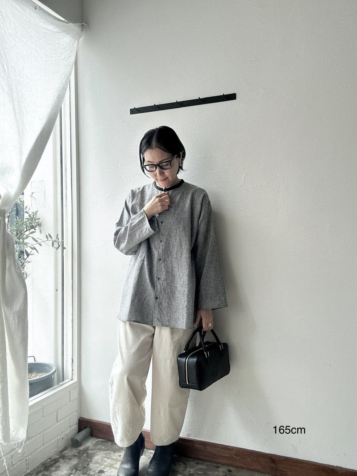 Luminaes 綿麻千鳥 バイカラーロングシャツ [SH-41]