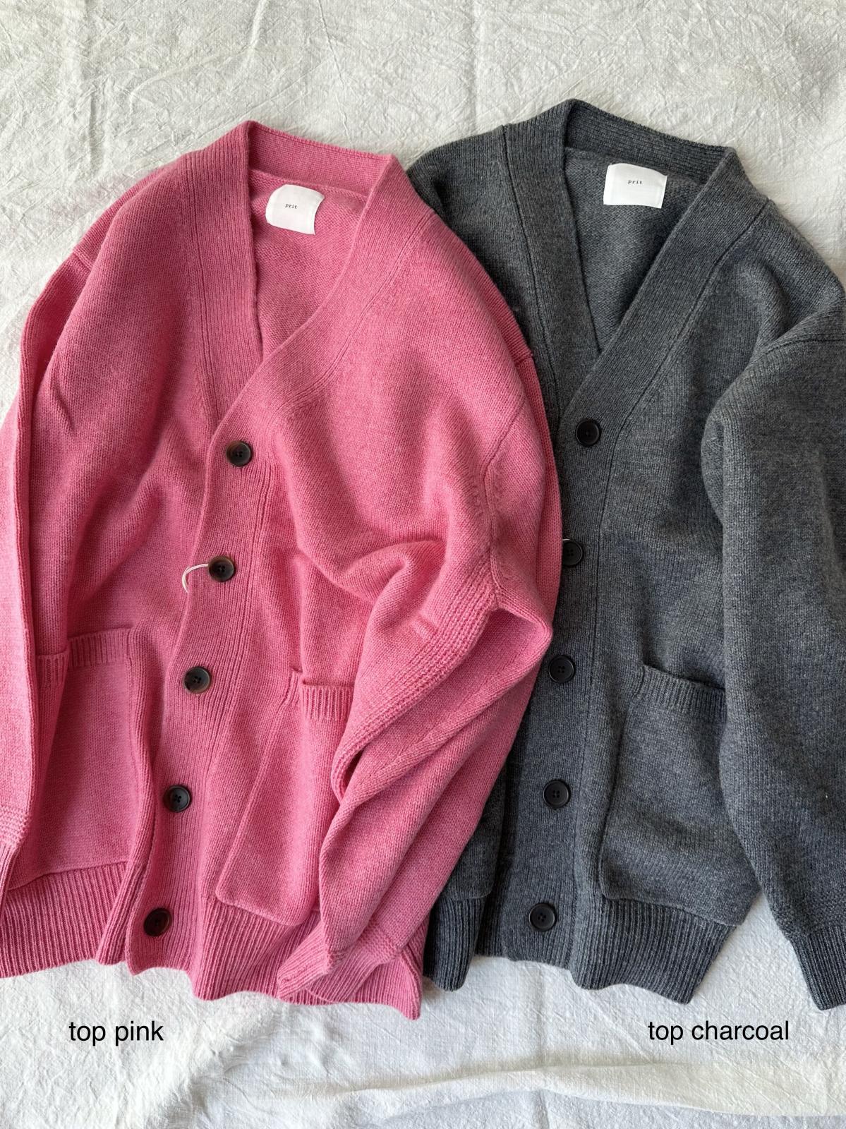 prit 2/15ラムウール5G天竺編み Vネックワイドカーディガン [P906105]