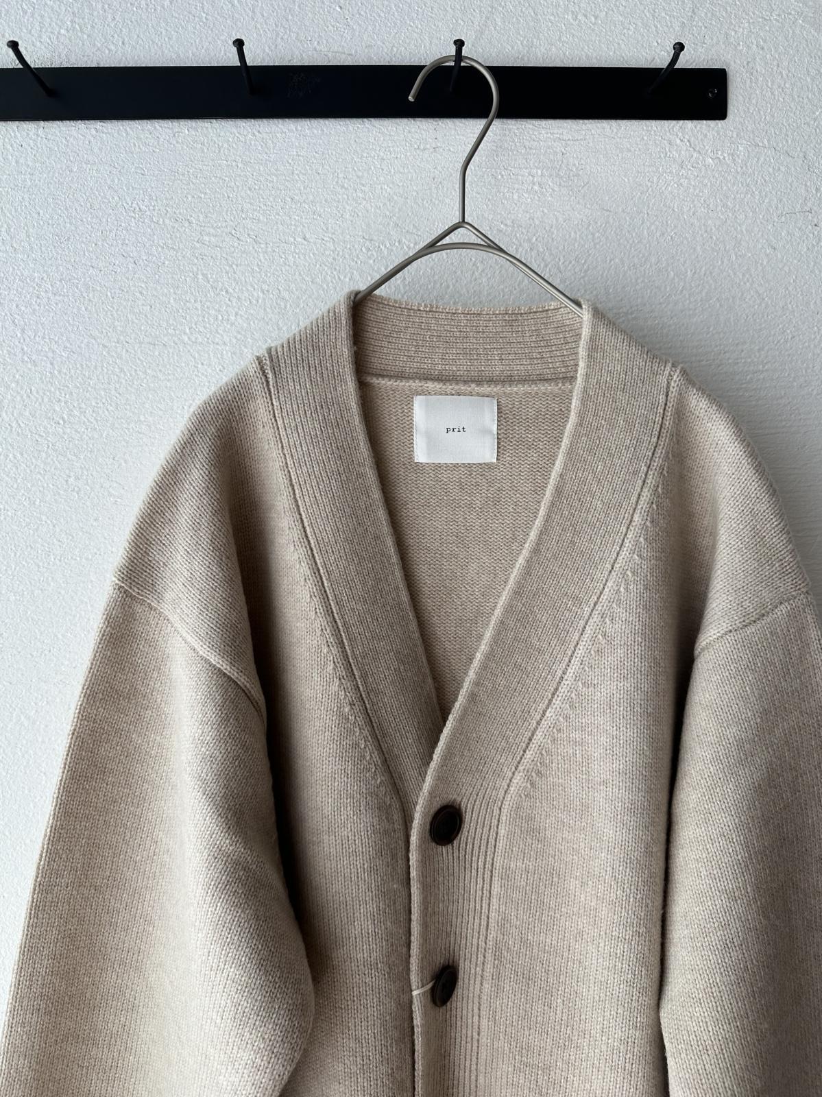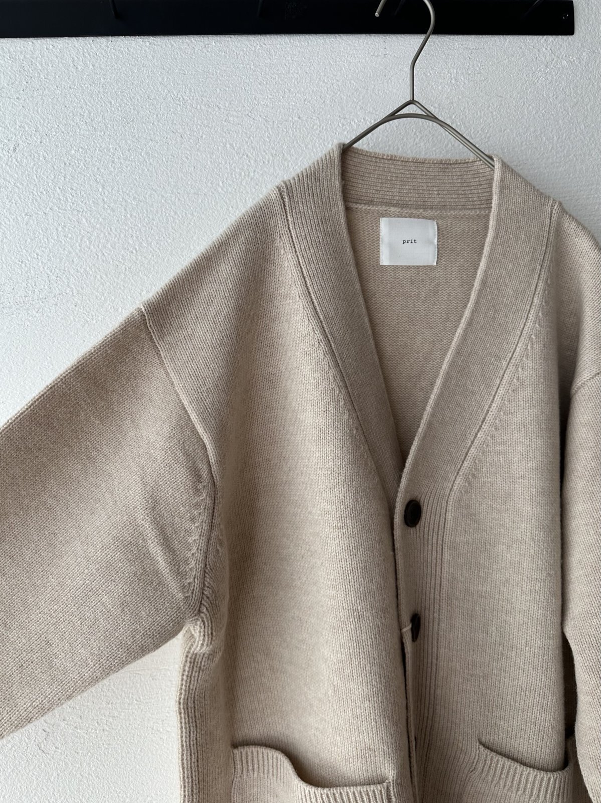 prit 2/15ラムウール5G天竺編み Vネックワイドカーディガン