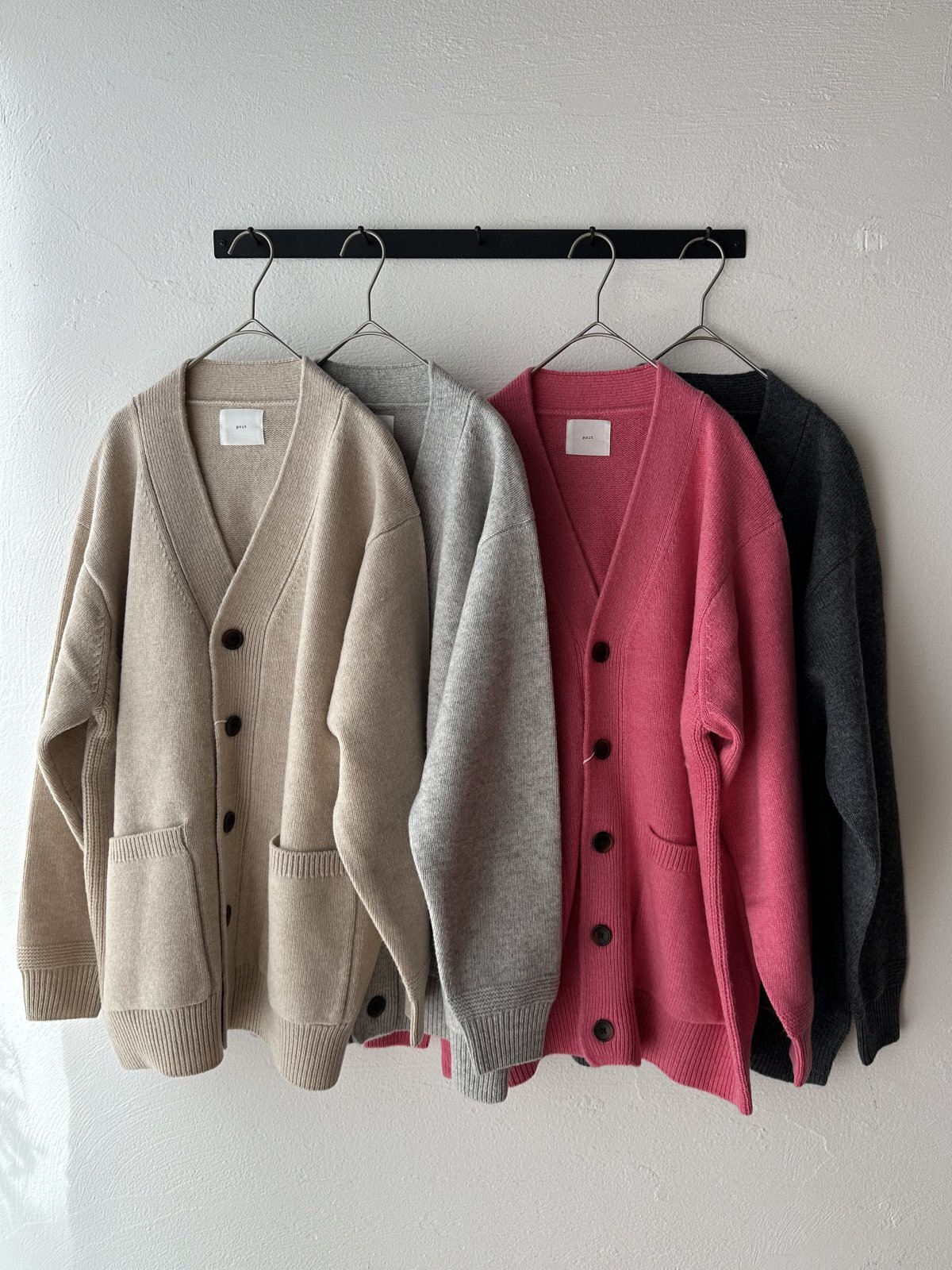 ラムウールを使用した 厚手でざっくりとした編地のカーディガン