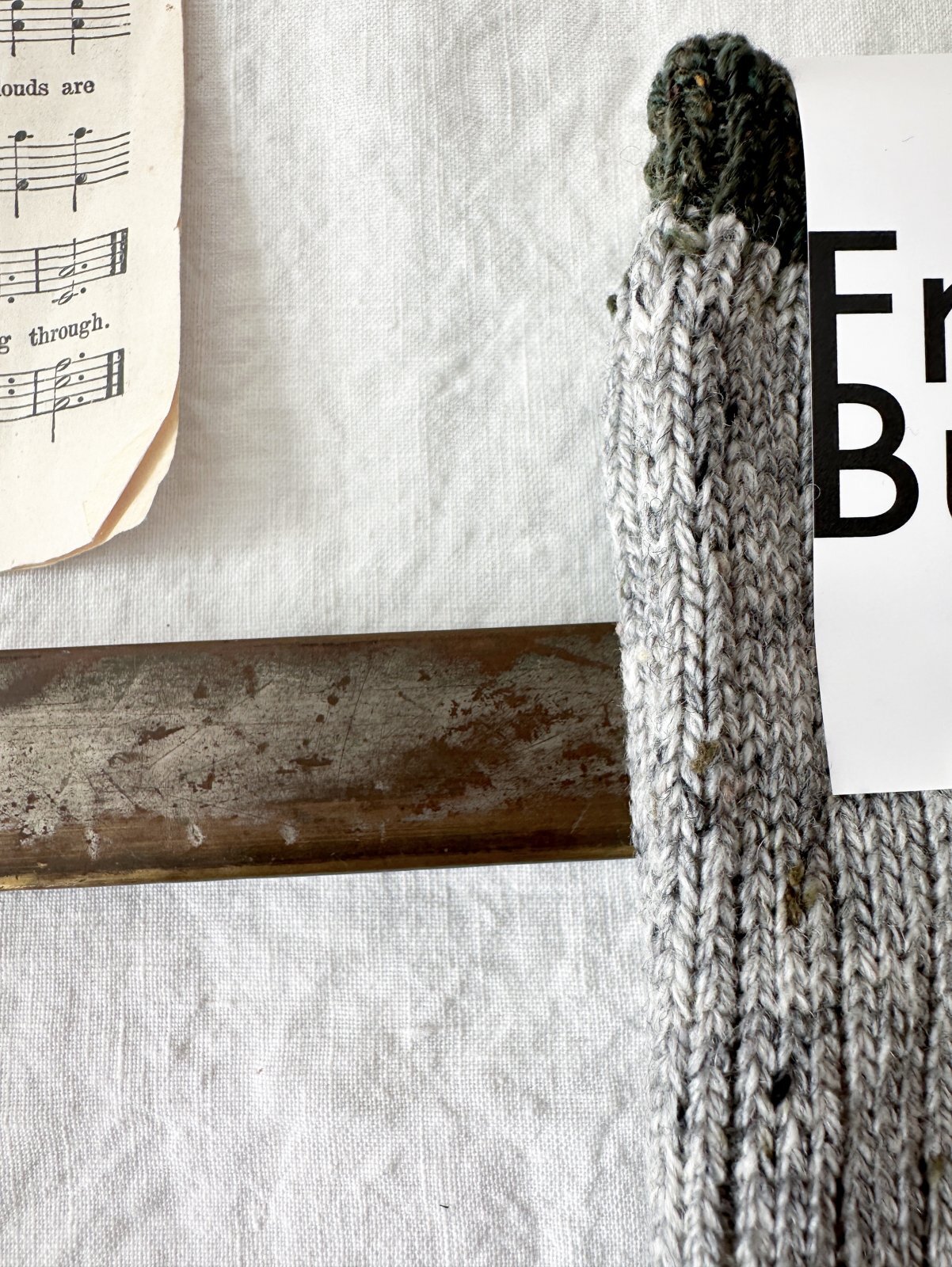 カラーネップ糸と防縮ウール糸をMIXして編み立て