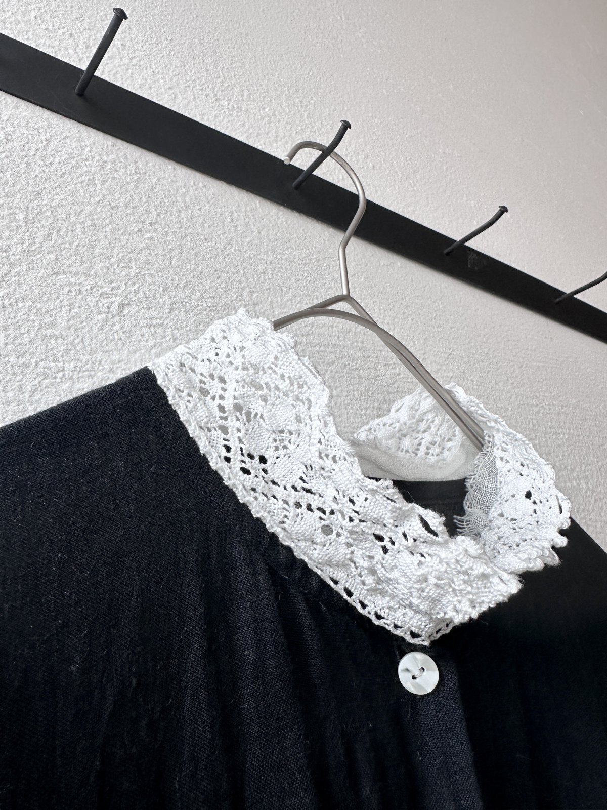 襟元には幅広の国産コットンのレースをつけています。