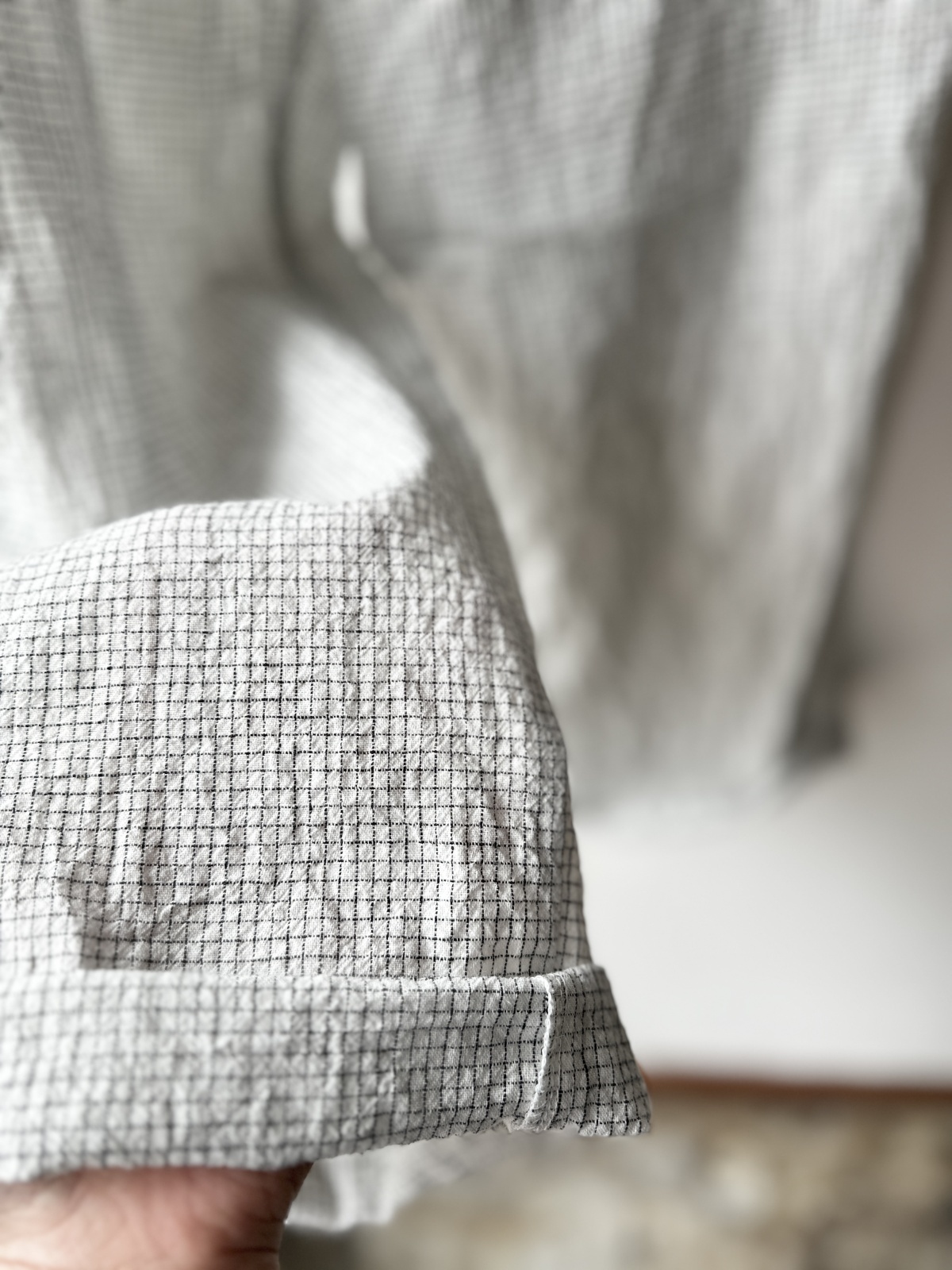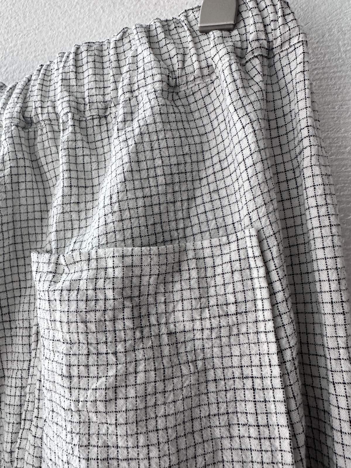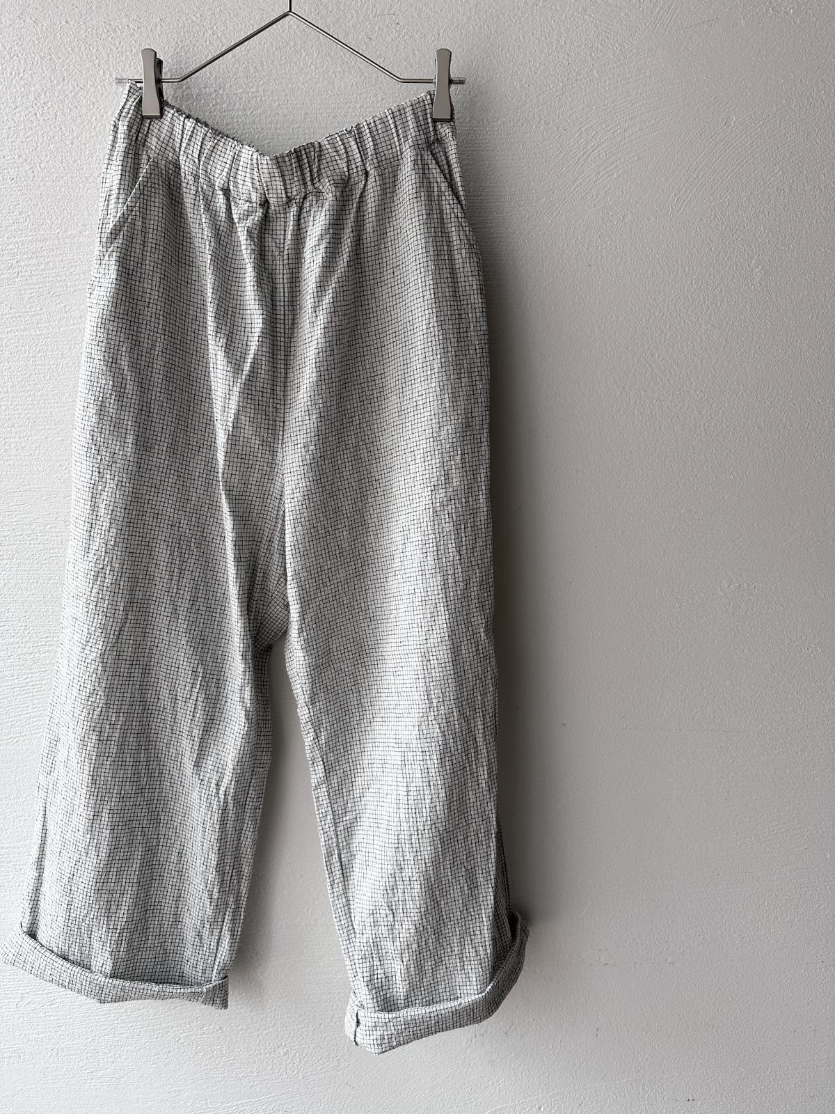 綿麻ピンチェックが爽やかなワイドパンツです。